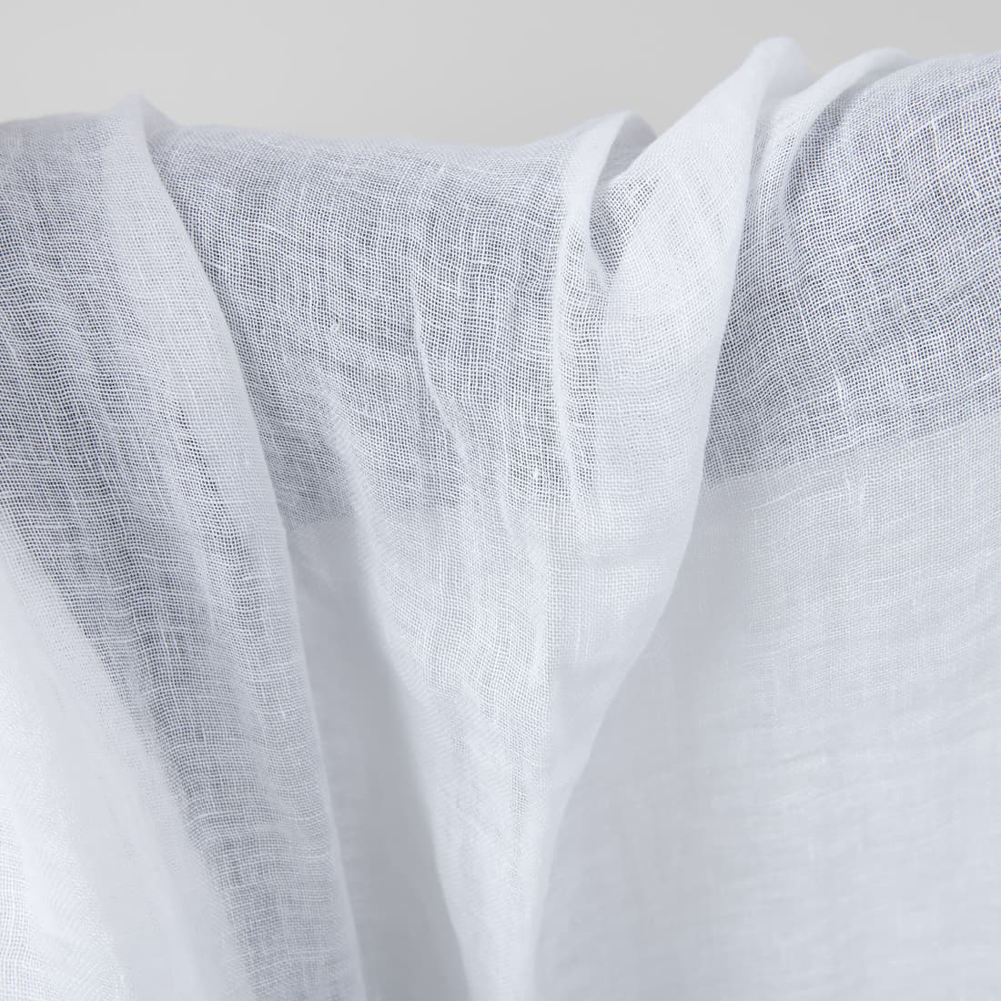 Ryškiai baltas permatomas lininis audinys, skalbtas