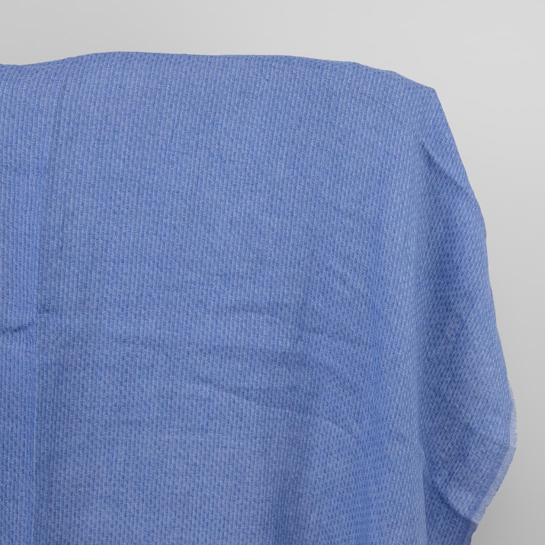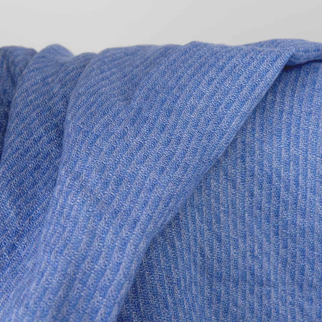 Lininis audinys austas mėlynais ir žydrais ruoželiais. Išskalbtas pramoniniu būdu jis tapo minkštas, švelnus, gaminiai pasiūti iš šio audinio bus malonūs liesti ir dėvėti, išskalbus pakartotinai nebesitrauks.