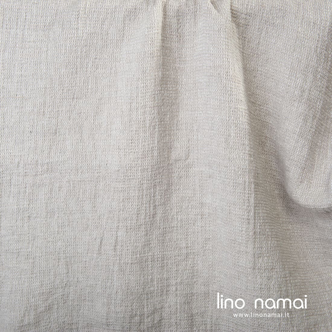Šviesiai pilkas lininis audinys mažais, vos išgaubtais langeliais. Išaustas naudojant baltus ir pilkus (lino spalvos) lininius verpalus. Šis „vaflinio“ rašto audinys gerai sugeria drėgmę. Skalbiant pakartotinai audinys nebesitrauks.