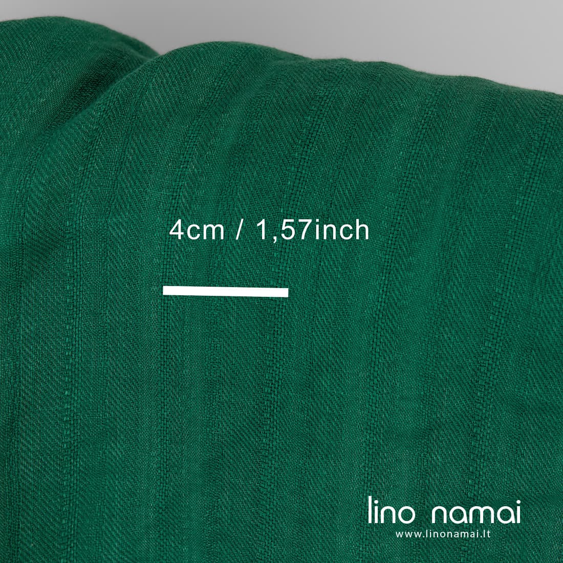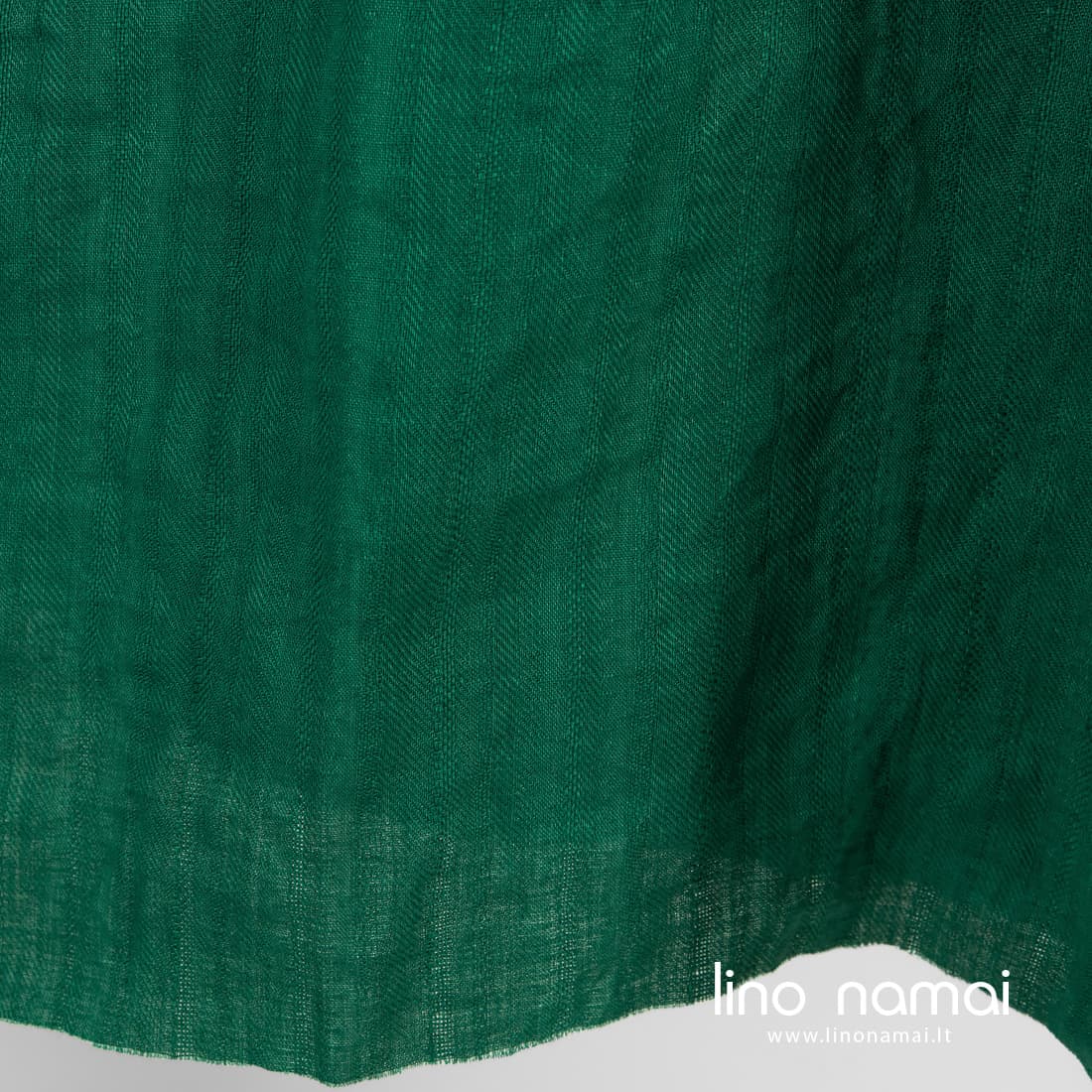 • Žalias lininis audinys vertikaliomis raštuotomis juostomis, specialiai skalbtas