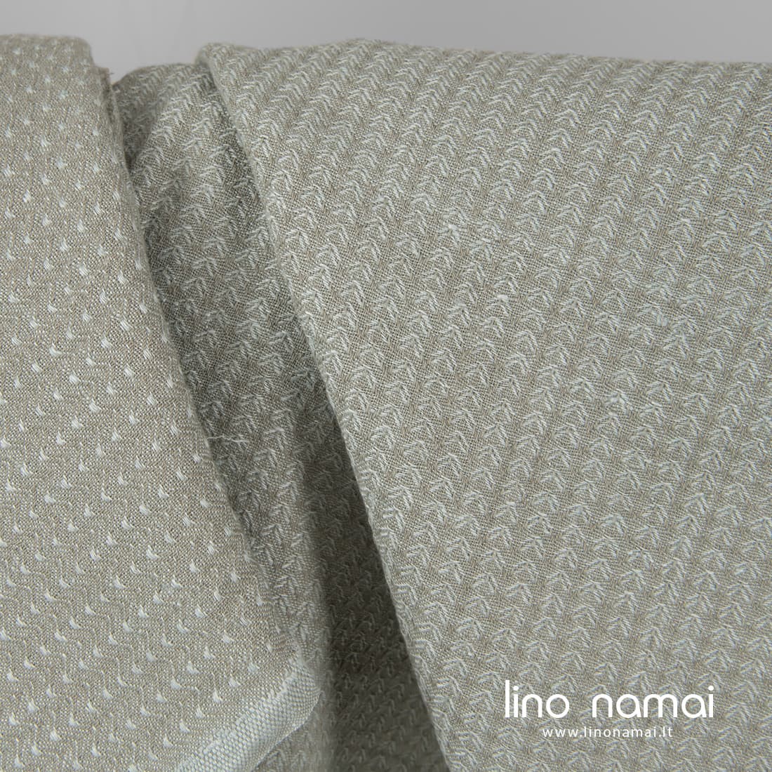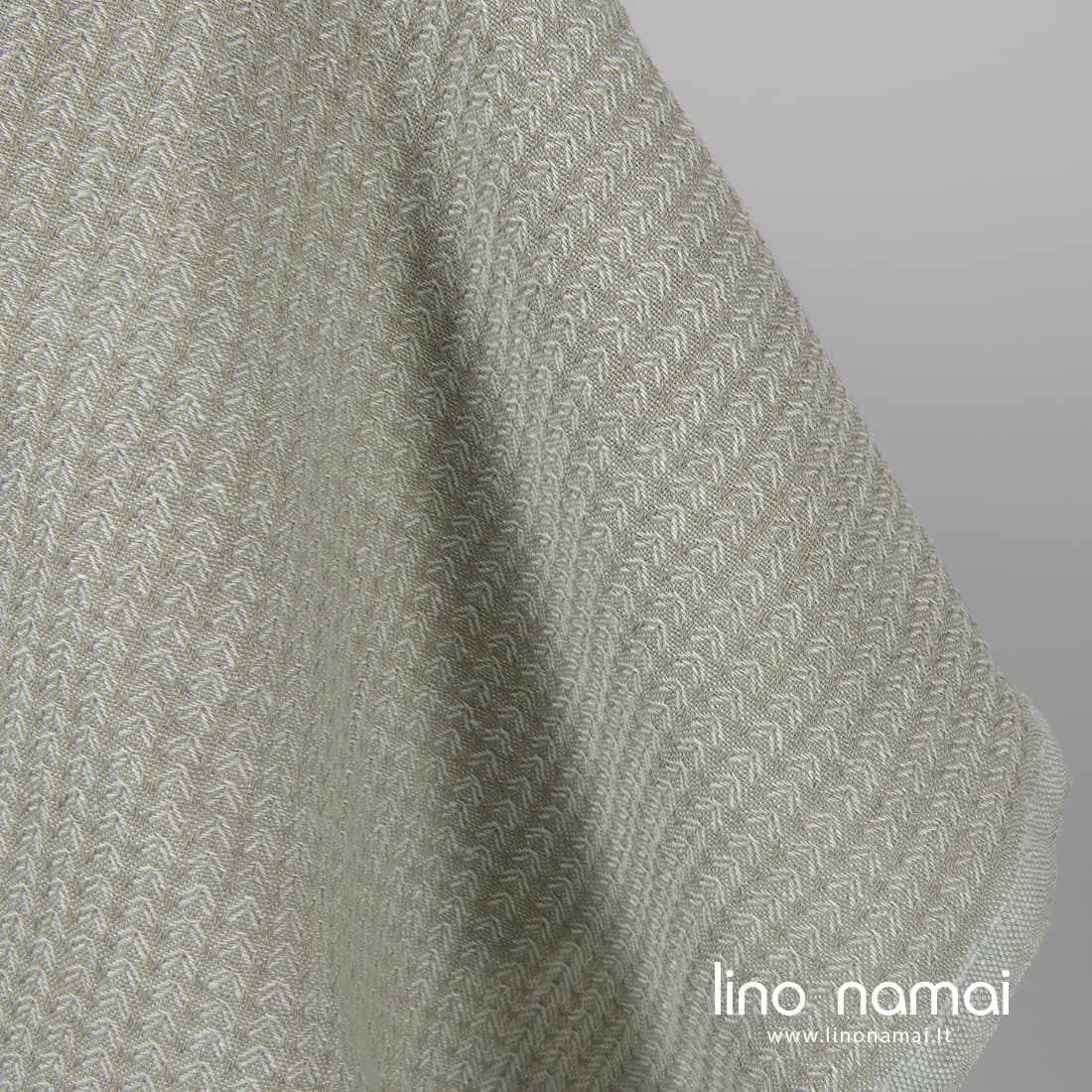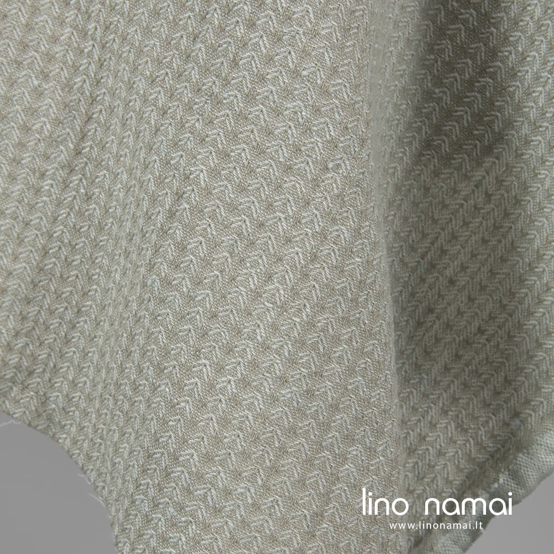 Žalsvai pilkas puslininis raštuotas audinys, išaustas „eglučių“ raštu iš melsvai žalsvų ir pilkų lino ir medvilnės verpalų. Tvirtas, tankus, specialiai skalbtas (tokiu būdu tapo minkštas, švelnus, nebesitrauks skalbiamas). Šis dekoratyvus audinys tinka drabužiams ir namų tekstilei siūti.