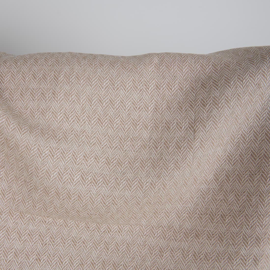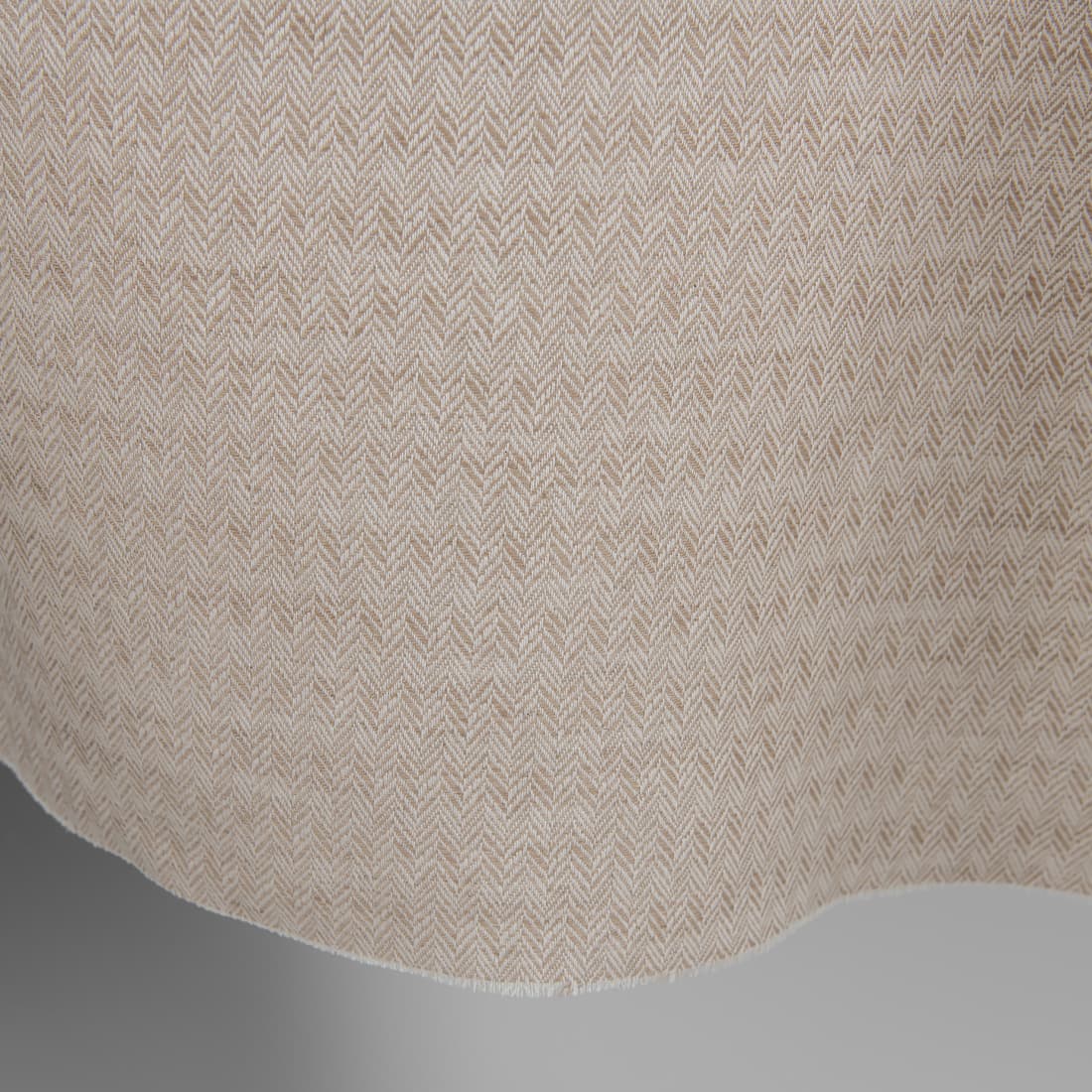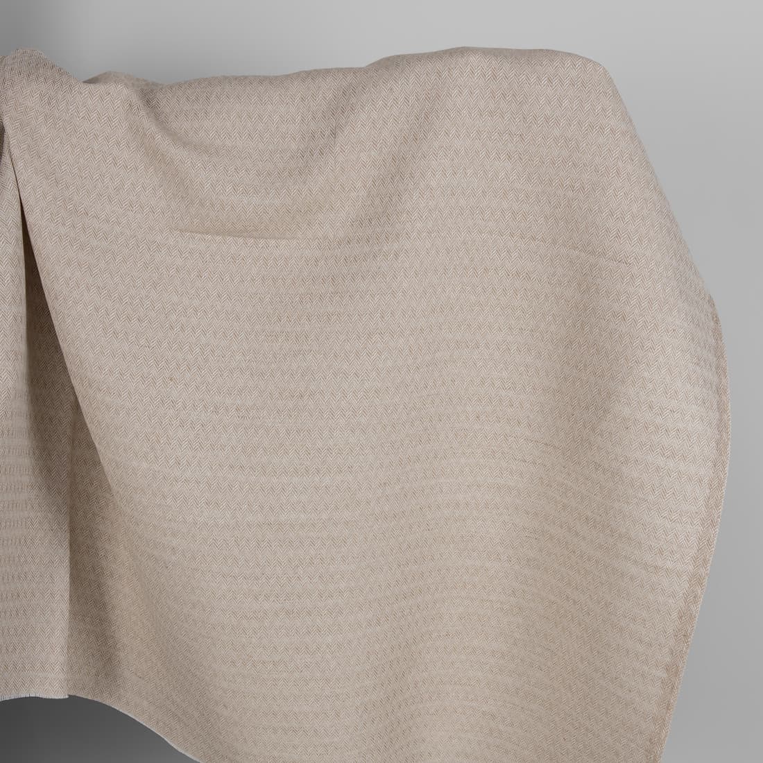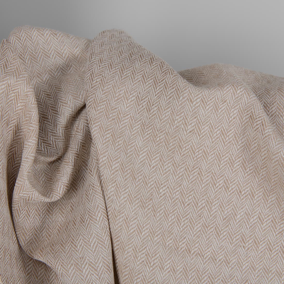 Balintos kakavos rudos ir baltos spalvų lino ir medvilnės sudėties audinys, austas smulkiu "eglutės" raštu. Tankus, vidutinio sunkumo žakardinis audinys tiks siūti įvairius namų tekstilės gaminius.
