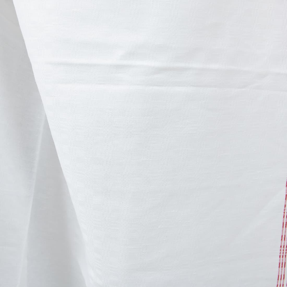 - Raštas: langeliai. 115cm pločio audinyje viena raudona raštuota juosta krašte, 150cm pločio audinys su raudonomis juostomis abiejuose kraštuose. Raudona juosta 11cm pločio ir įausta 11cm nuo krašto.