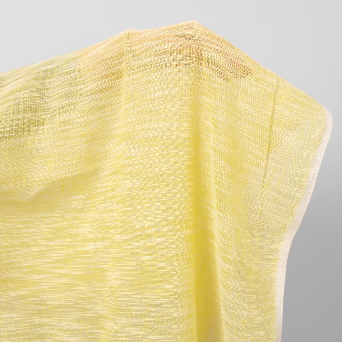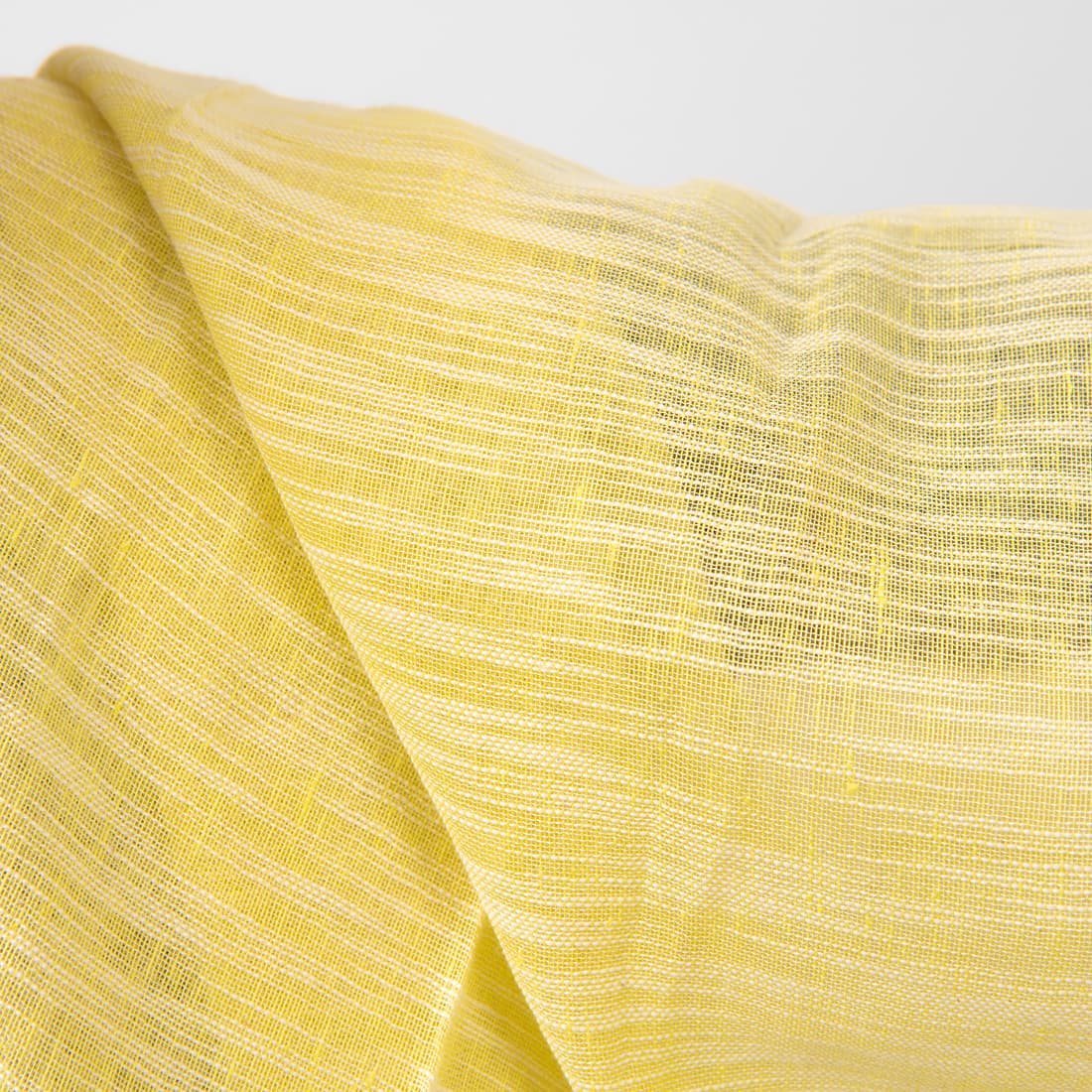 Citrinos geltonos spalvos dryžuotas audinys. Audimo metu ataudžiant buvo įterpiami fasoniniai siūlai, kurie sukūrė "rainą" raštą. Šviesus, lengvas ir retas, persišviečiantis lino su medvilne audinys tinka siūti lengvas užuolaidas, šalikus ir aksesuarus.
