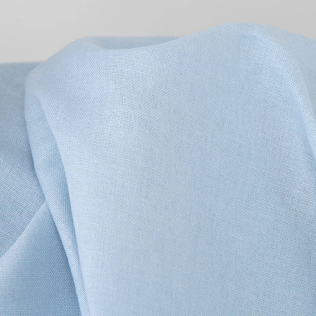 Melsvas lino-medvilnės audinys. Plonas, tvirtas, tankus, kokybiškas ir patvarus audinys. Tinkantis įvairiai namų tekstilei, patalams, drabužiams bei aksesuarams.