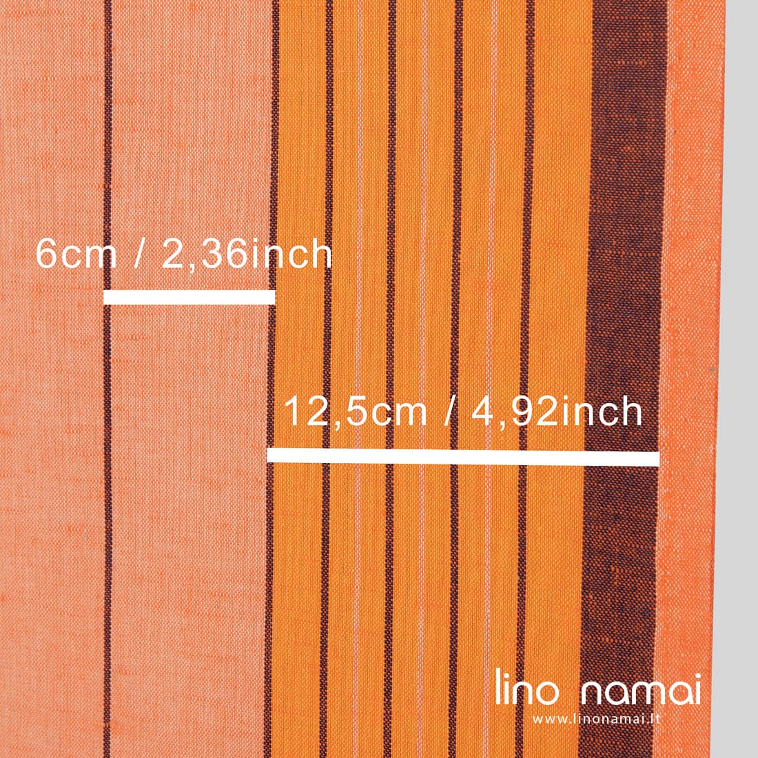 • Lino - medvilnės audinys su oranžinėmis juostomis virtuvės rankšluostukams siūti