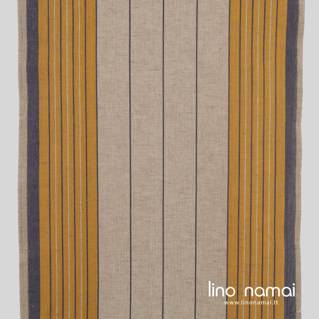 • Pilkas rankšluostinis lino - medvilnės audinys geltonomis juostomis