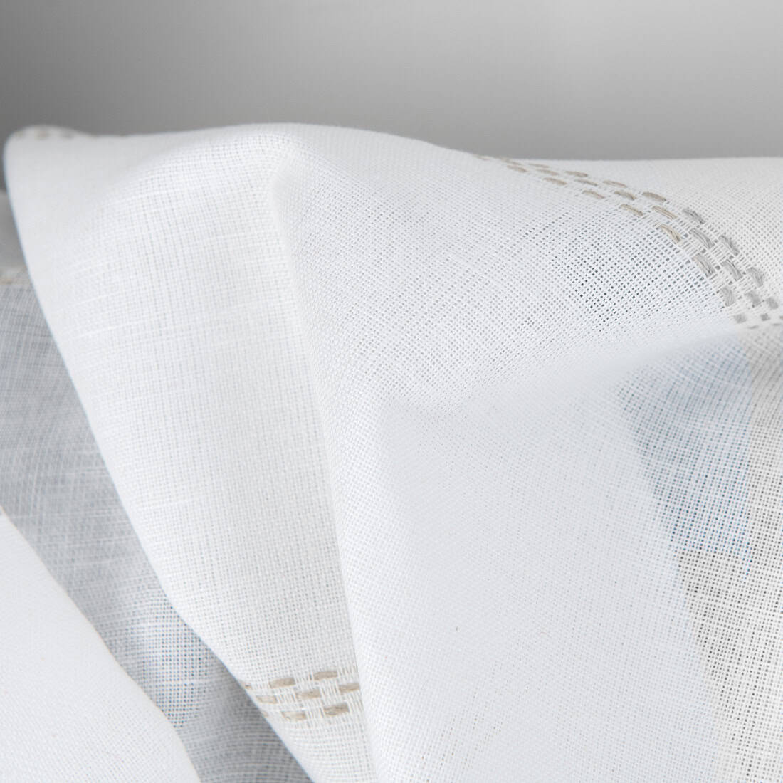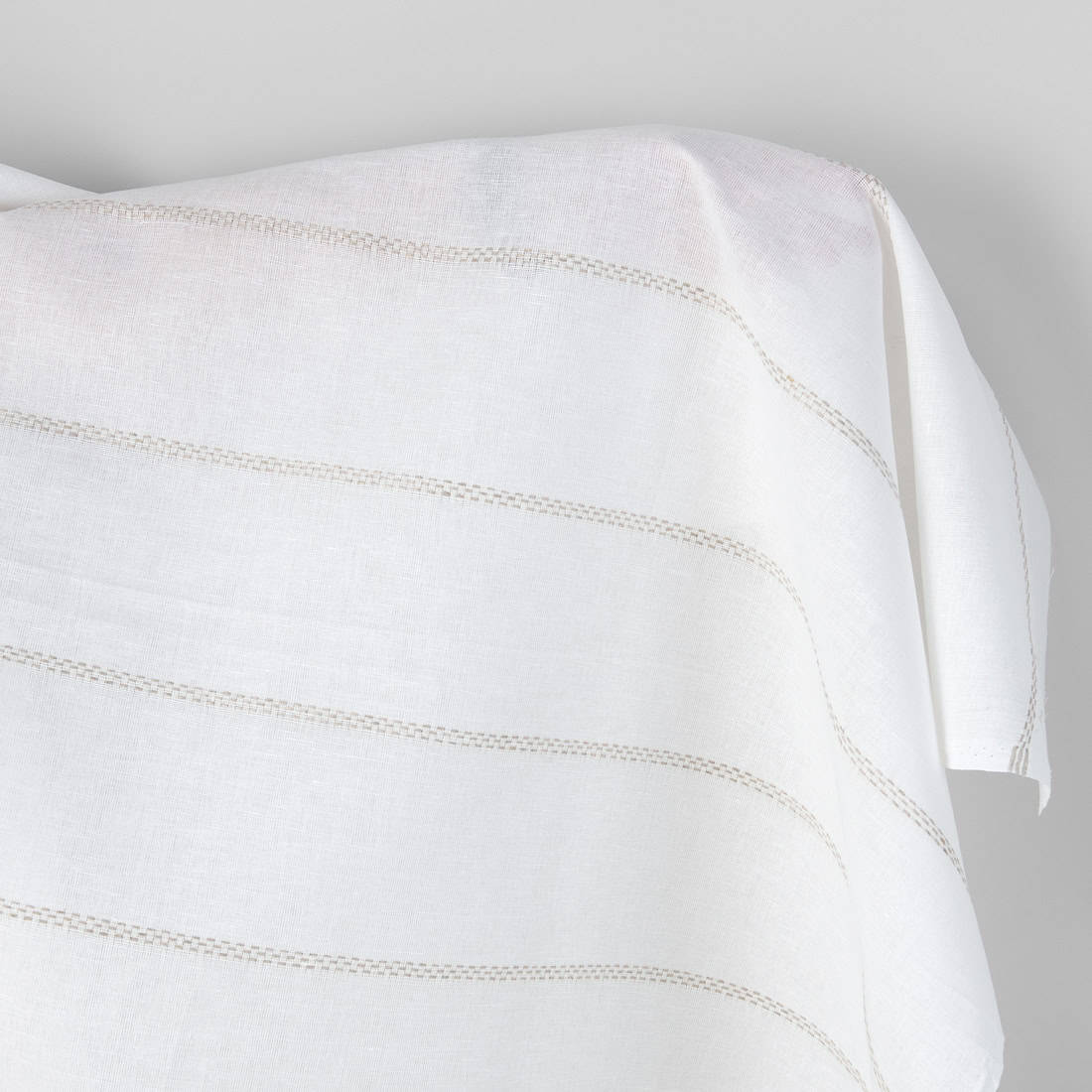 Pastaba: Audžiant šį audinį naudoti natūralios spalvos (nedažyti) lininiai verpalai, todėl Jūsų gauto audinio atspalvis gali šiek tiek skirtis nuo matomo nuotraukoje. Užsisakant pakartotinai atspalvis taip pat gali skirtis.