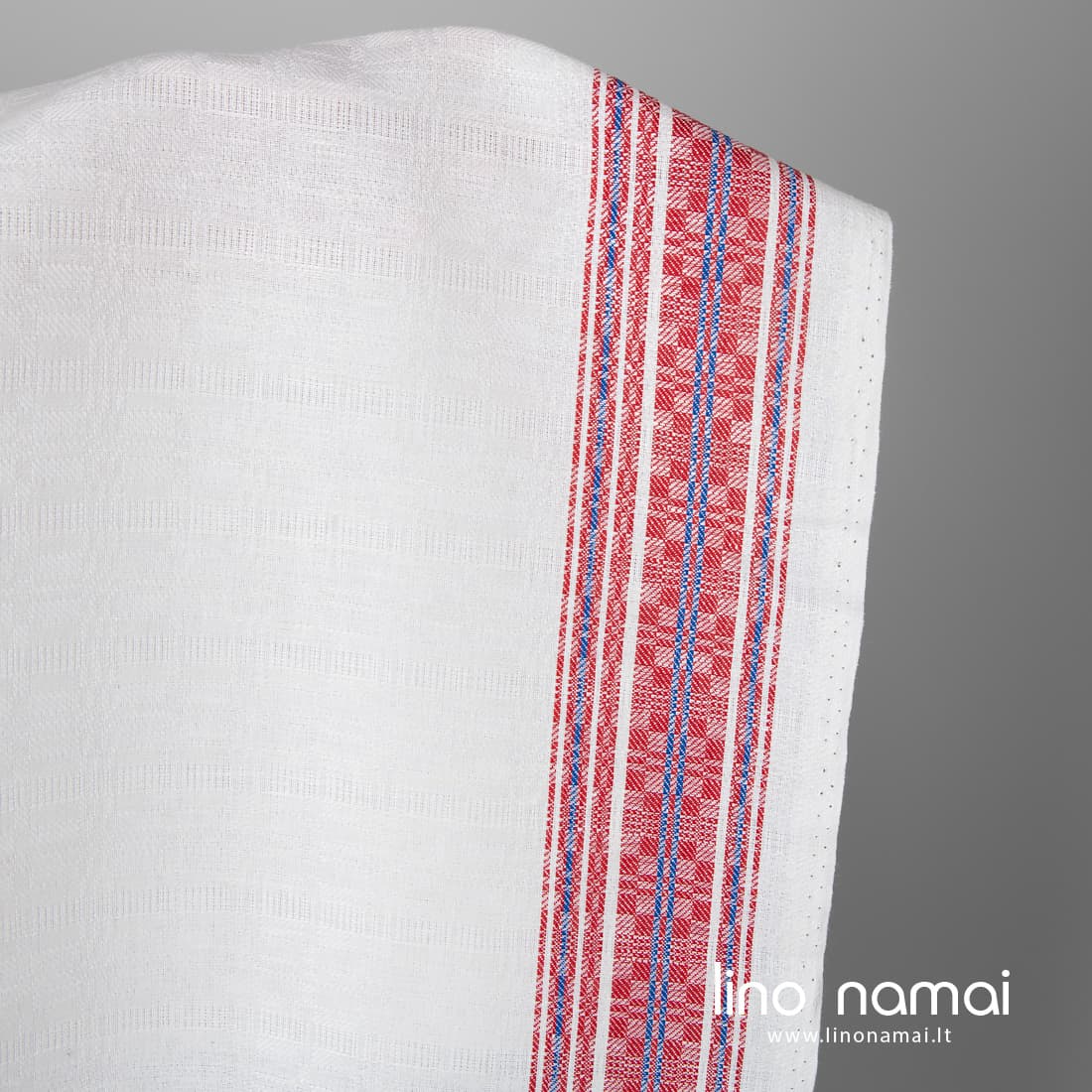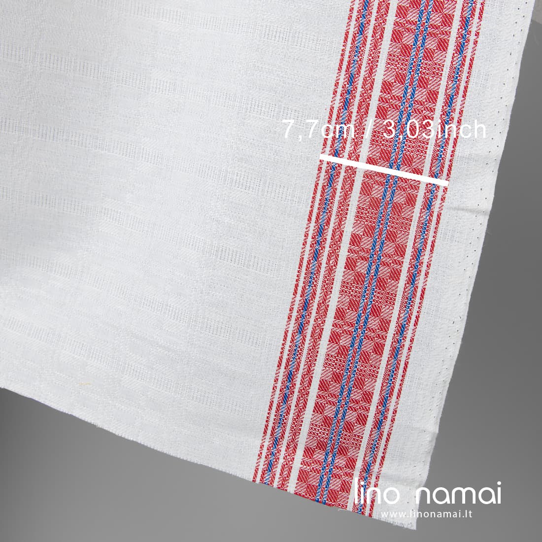 - Raštas: smulkiaraštis, vertikalios raudonai mėlynos juostos abiejose kraštinėse