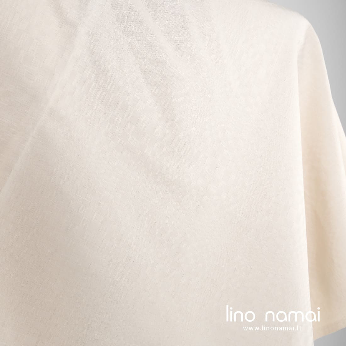 • Šviesios kreminės spalvos lino - medvilnės audinys langeliais
