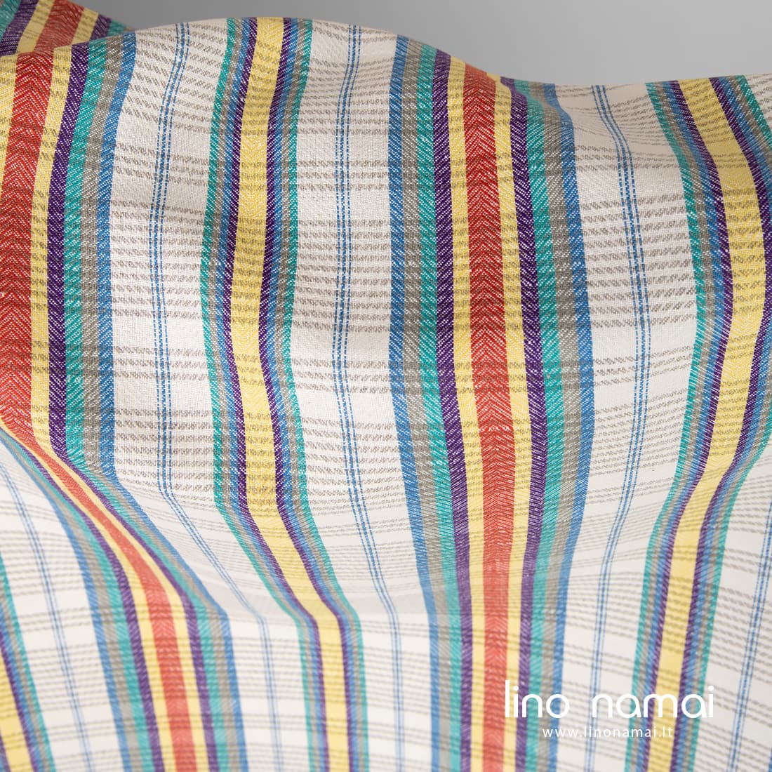 Pastaba: Audžiant šį audinį naudoti natūralios spalvos (nedažyti) lininiai verpalai, todėl Jūsų gauto audinio atspalvis gali šiek tiek skirtis nuo matomo nuotraukoje. Užsisakant pakartotinai atspalvis taip pat gali skirtis.