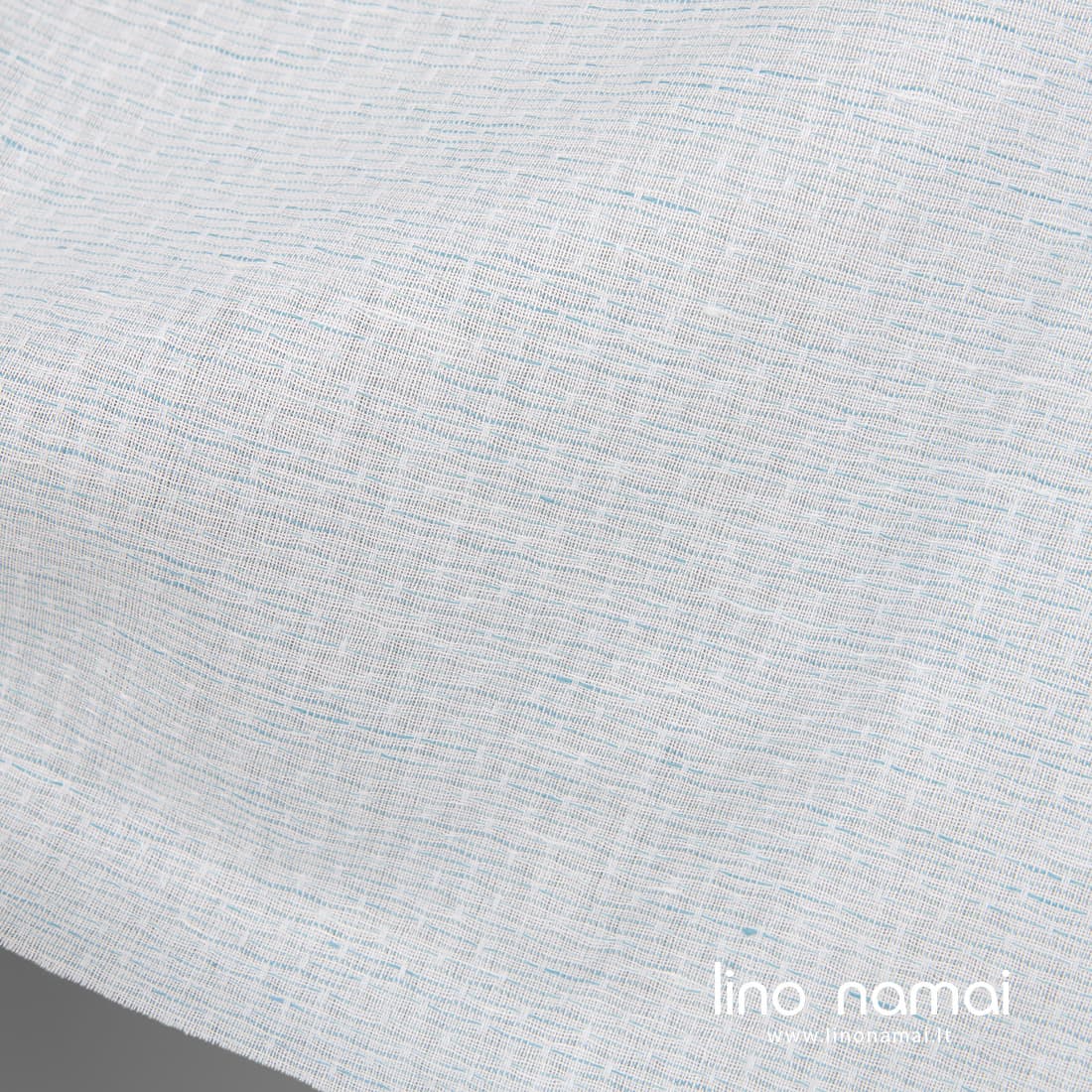 • Lino - medvilnės audinys smulkiai raštuotas išaustas iš ryškiai baltų ir šviesios turkio spalvos verpalų