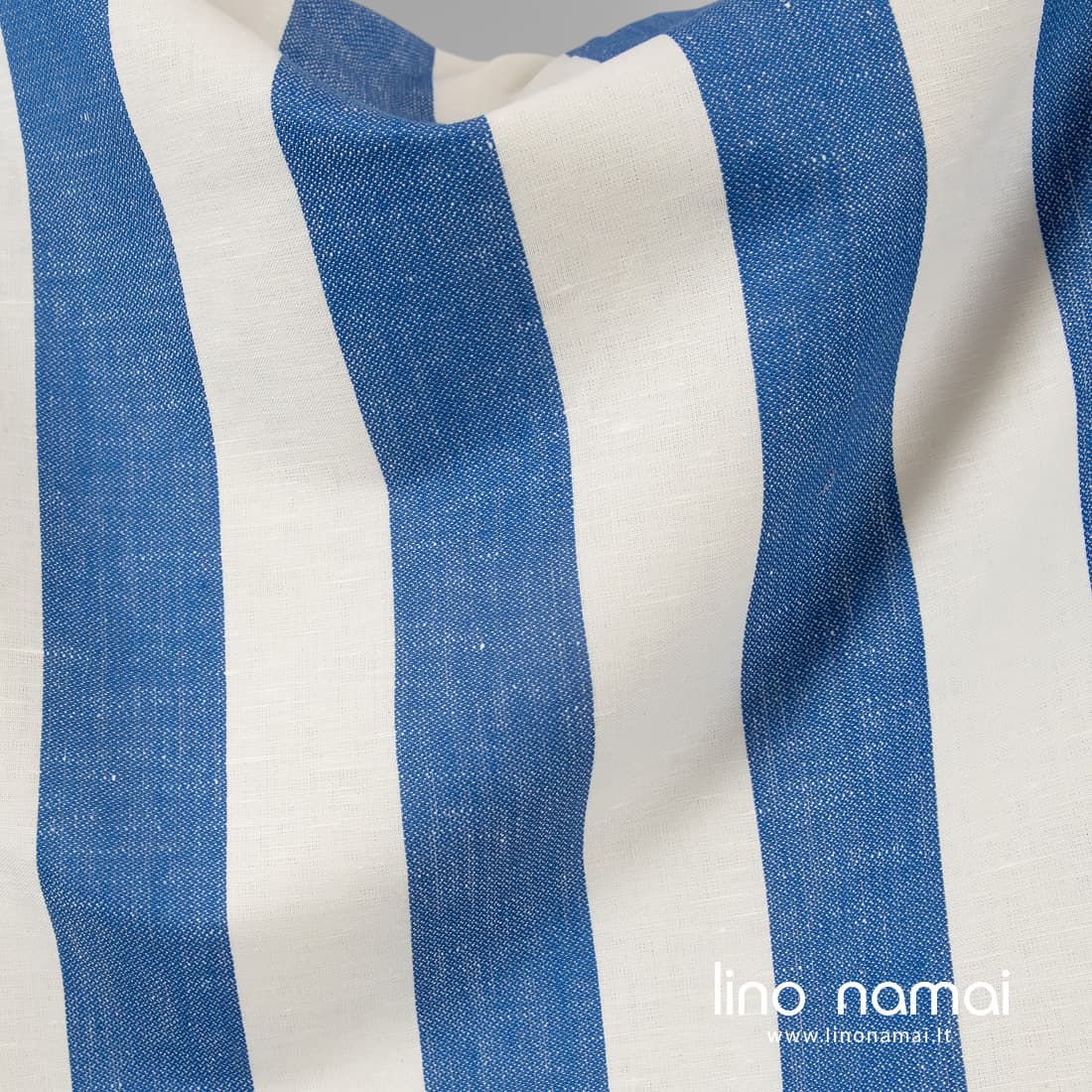 • Puslininis audinys mėlynai baltai dryžuotas