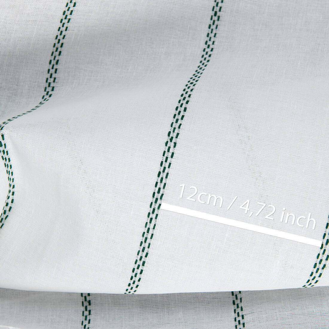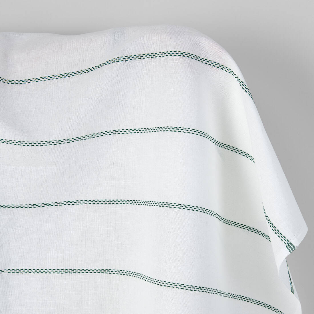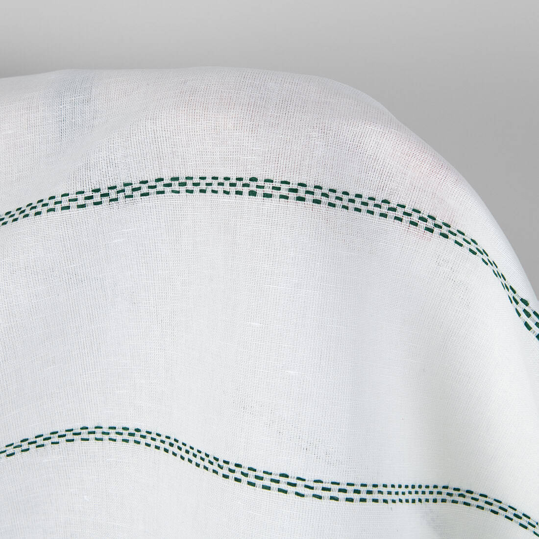 • Puslininis audinys pieno baltumo su žaliais dryžiais