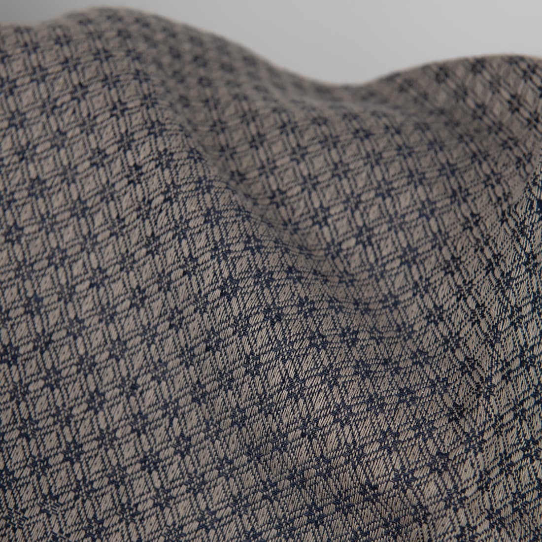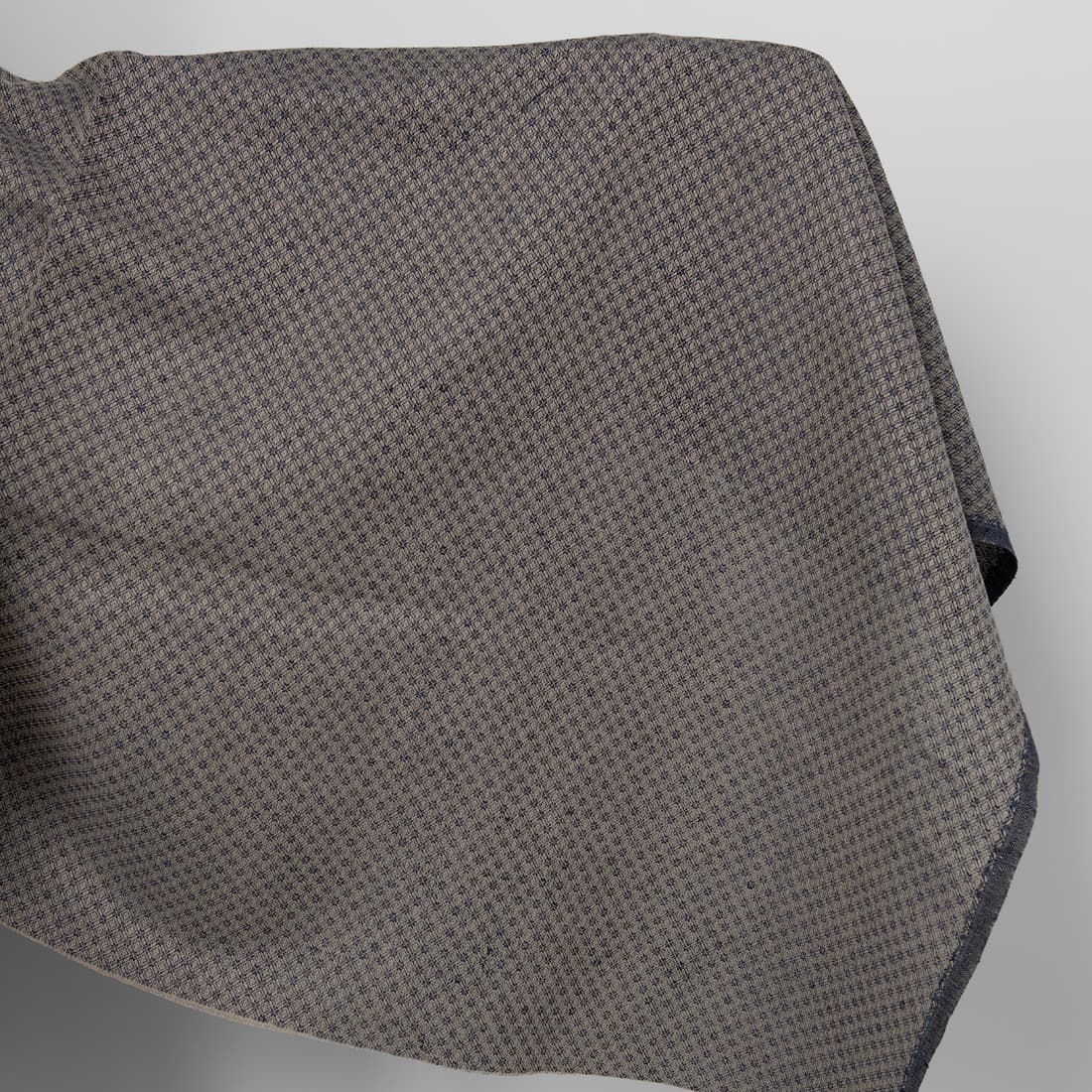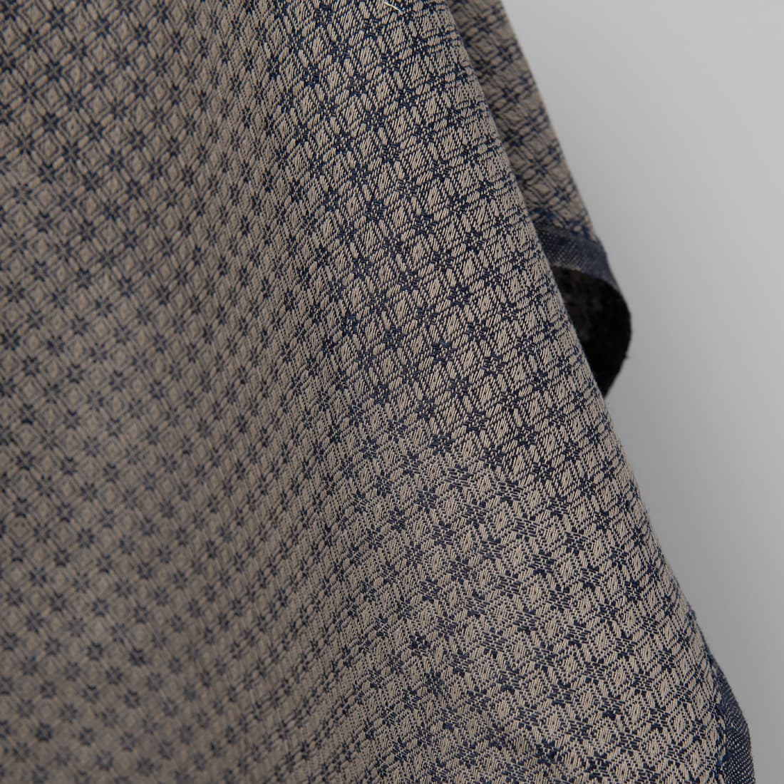 • Puslininis audinys pilkai-mėlynu rombų raštu