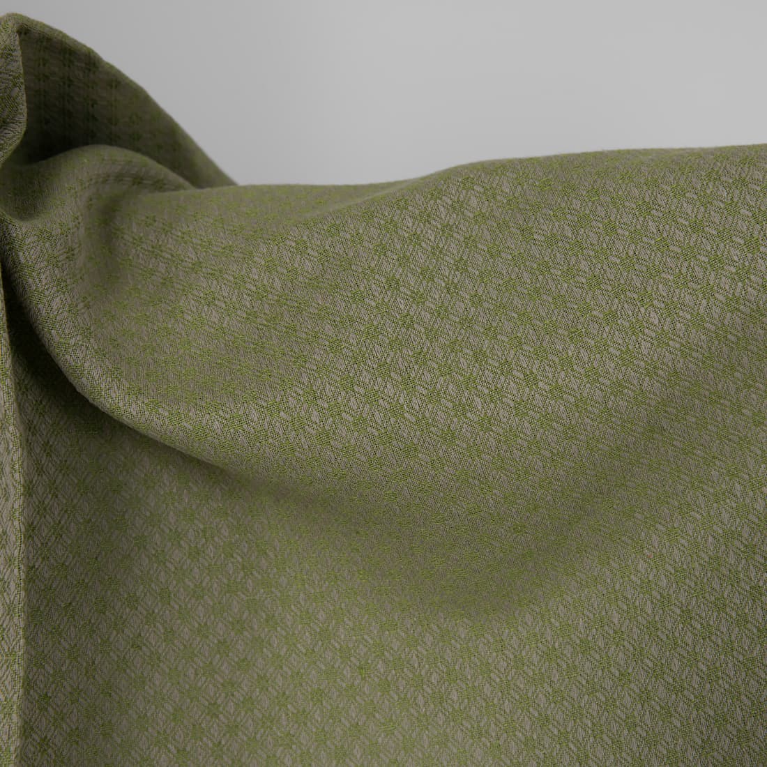 Puslininis audinys pilkai-žaliu rombų raštu