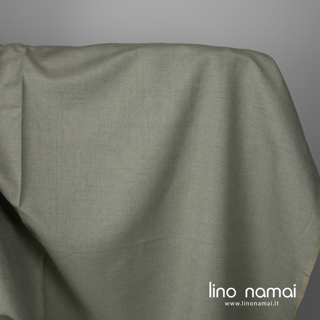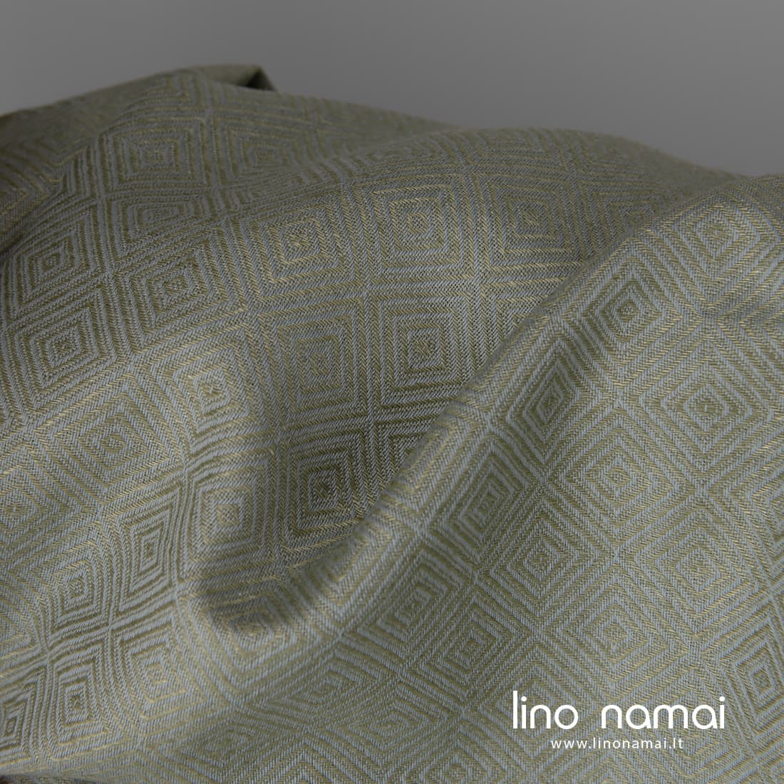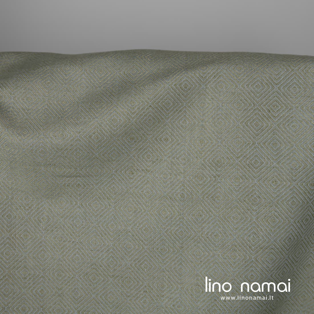 • Lino - medvilnės audinys pilkai žalsvais rombais