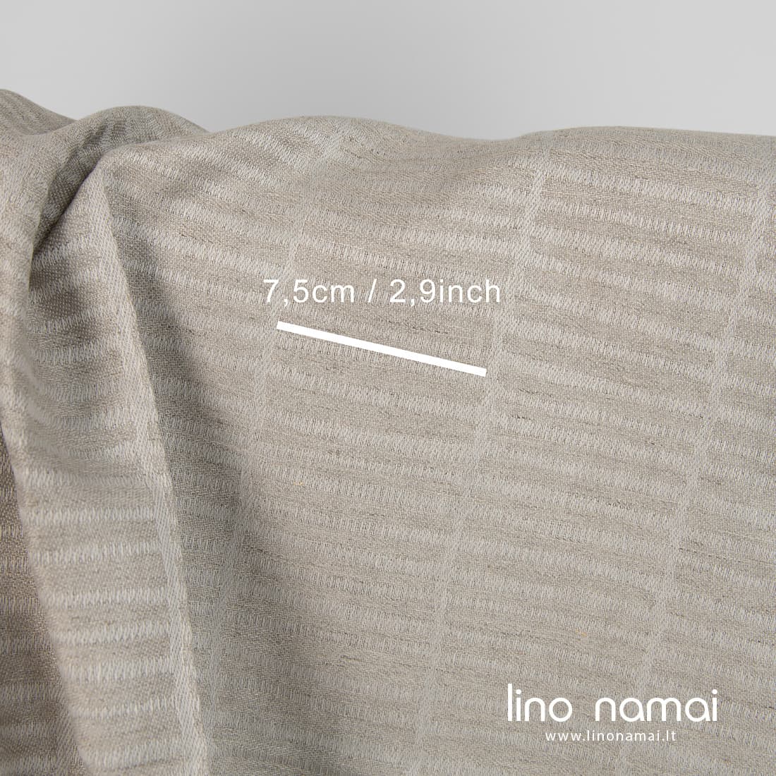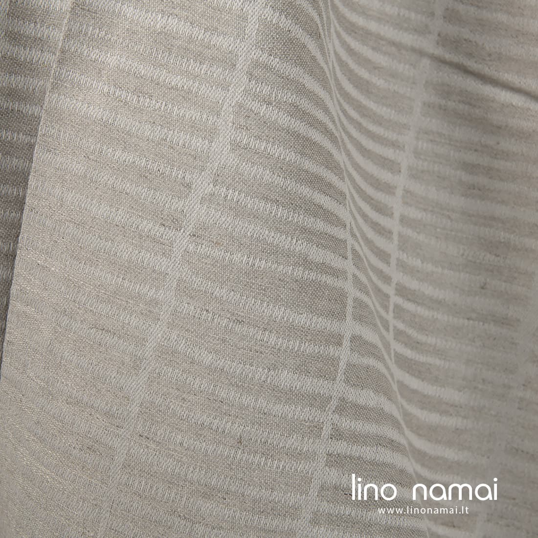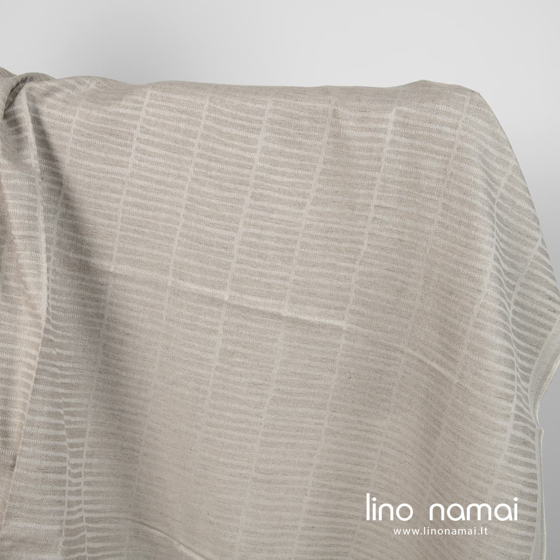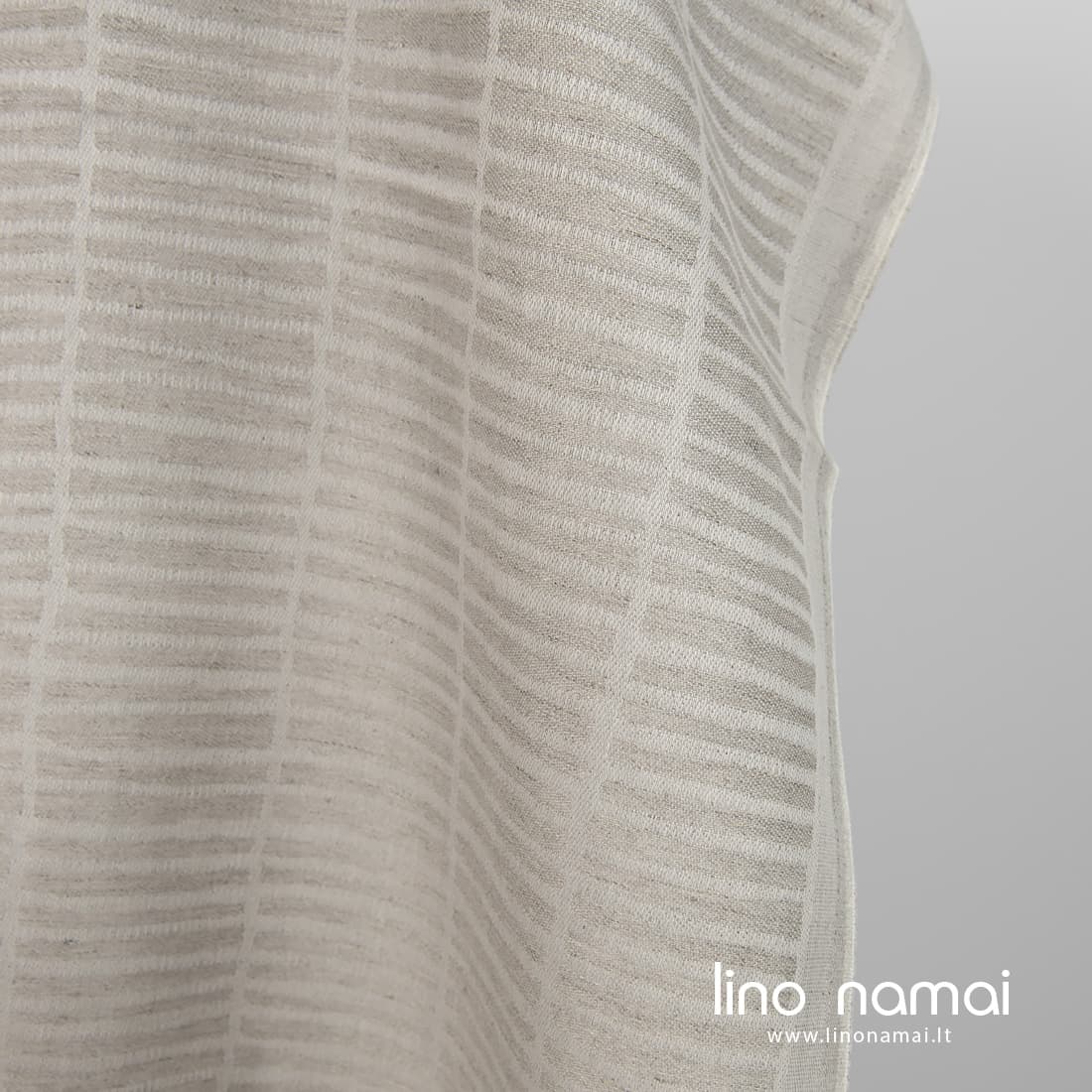 Pastaba: Audžiant šį audinį naudoti natūralios spalvos (nedažyti) lininiai verpalai, todėl Jūsų gauto audinio atspalvis gali šiek tiek skirtis nuo matomo nuotraukoje. Užsisakant pakartotinai atspalvis taip pat gali skirtis.