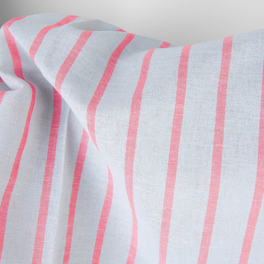 • Puslininis audinys šviesiai pilkas su ryškiai rausvais dryžiais, 150cm pločio