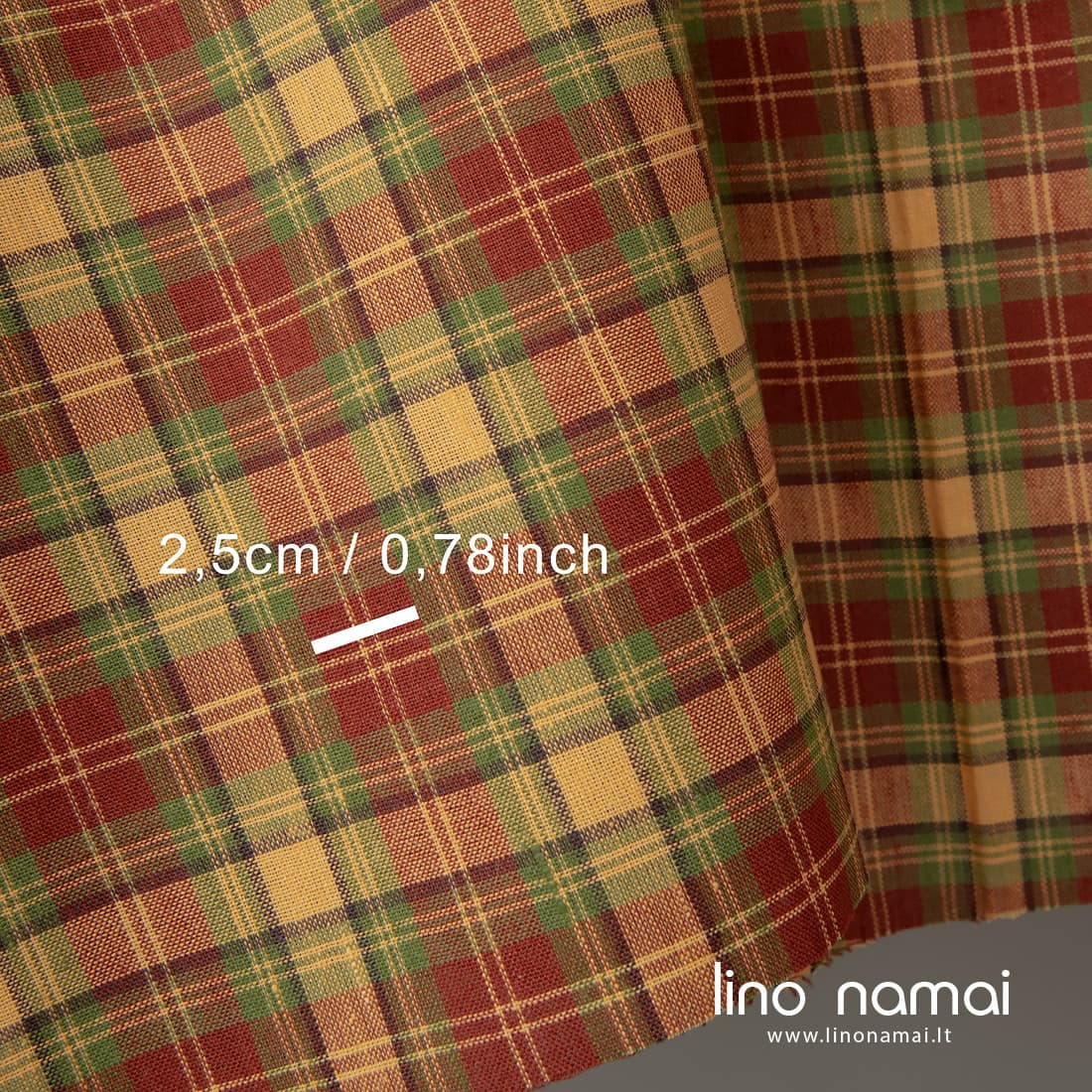 Puslininis audinys raudonais, žaliais, geltonais langeliais