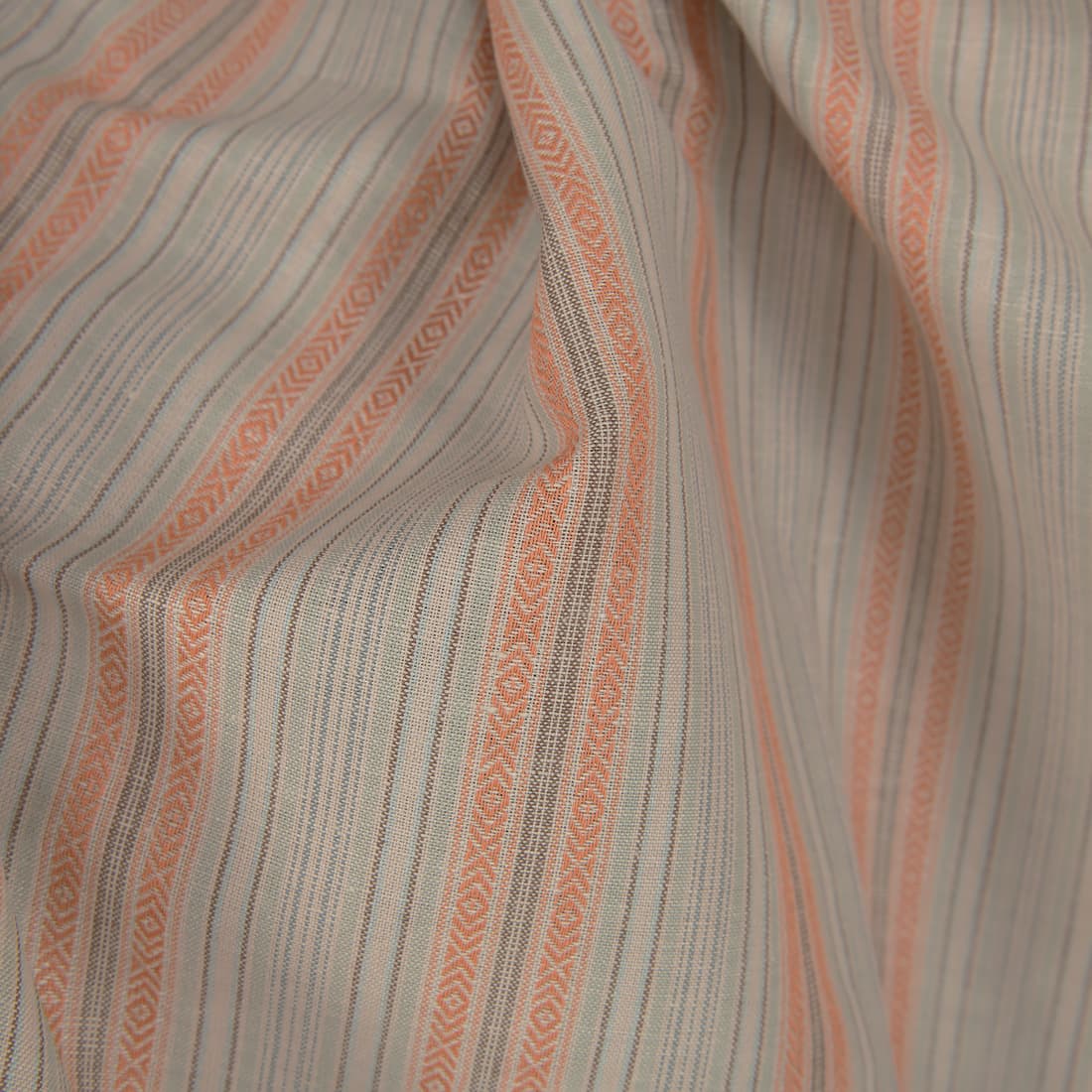 • Lino - medvilnės audinys rudomis raštuotomis juostelėmis