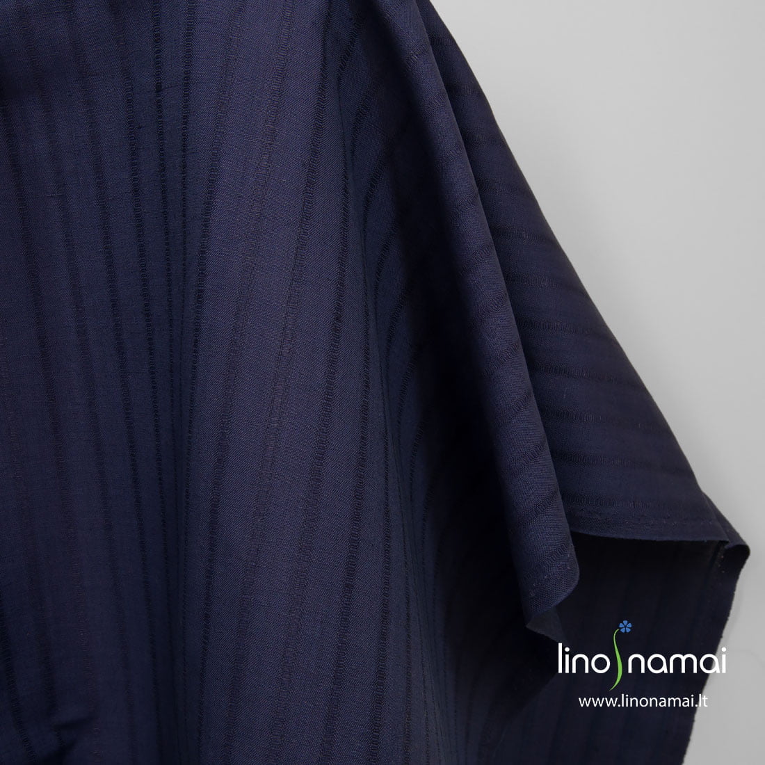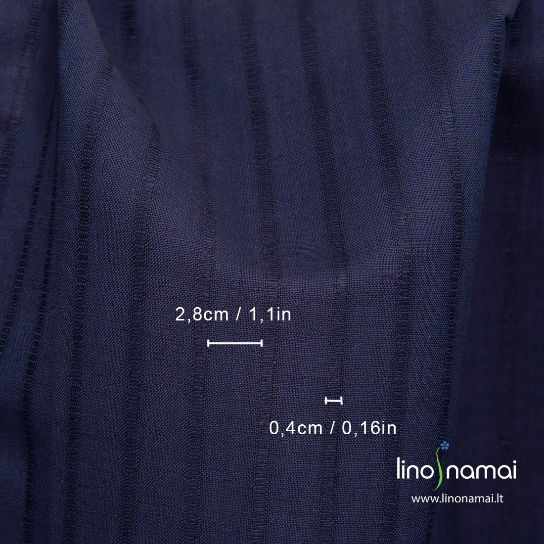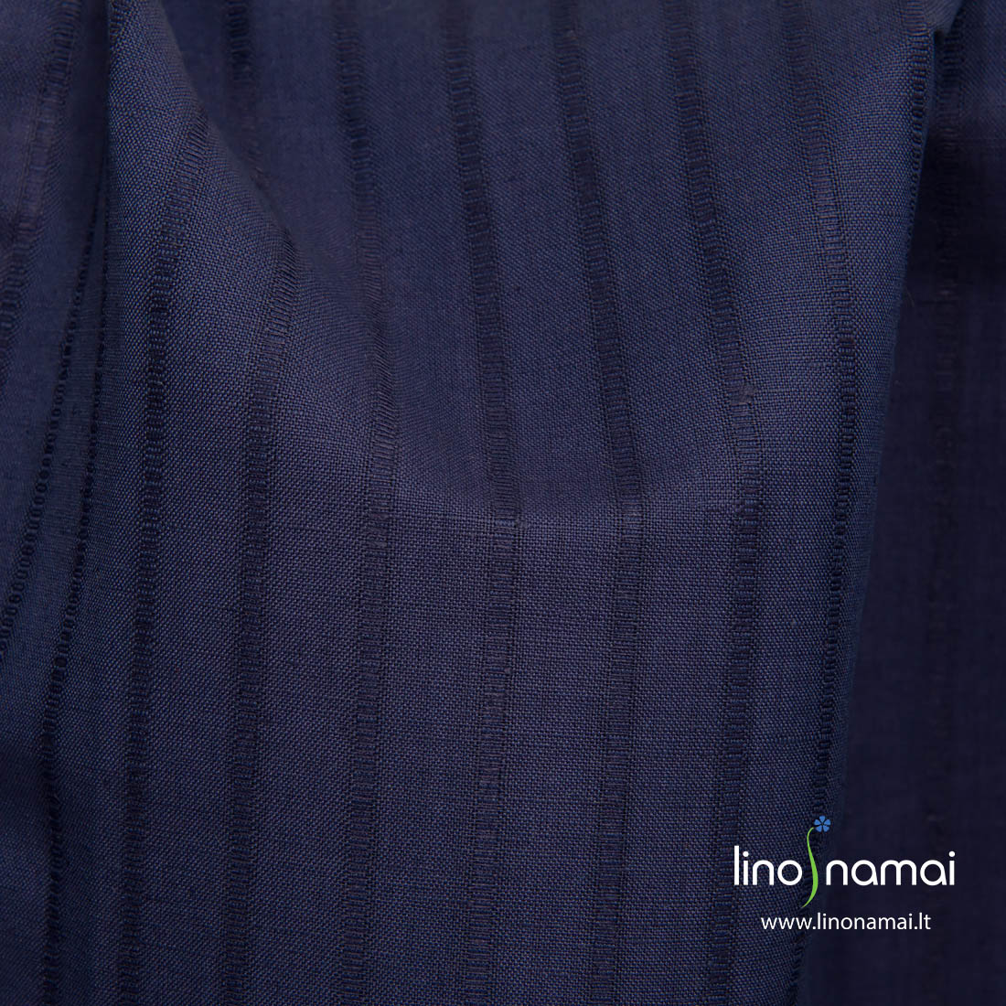 Puslininis audinys tamsiai mėlynas su juostelėmis, kurios yra 2,8cm ir 0,4cm pločio ir eina audinyje vertikaliai. Siaurosios juostelės tankesnės nei plačiosios. Šis lino - medvilnės sudėties audinys yra tvirtas, tankus, vidutinio storio.