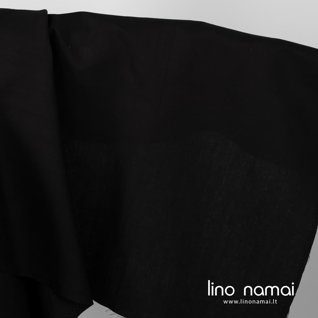 Lino - medvilnės sudėties juodas audinys yra tvirtas, tankus, vidutinio storio. Tinka drabužiams, staltiesėms, užuolaidoms, prijuostėms siūti.