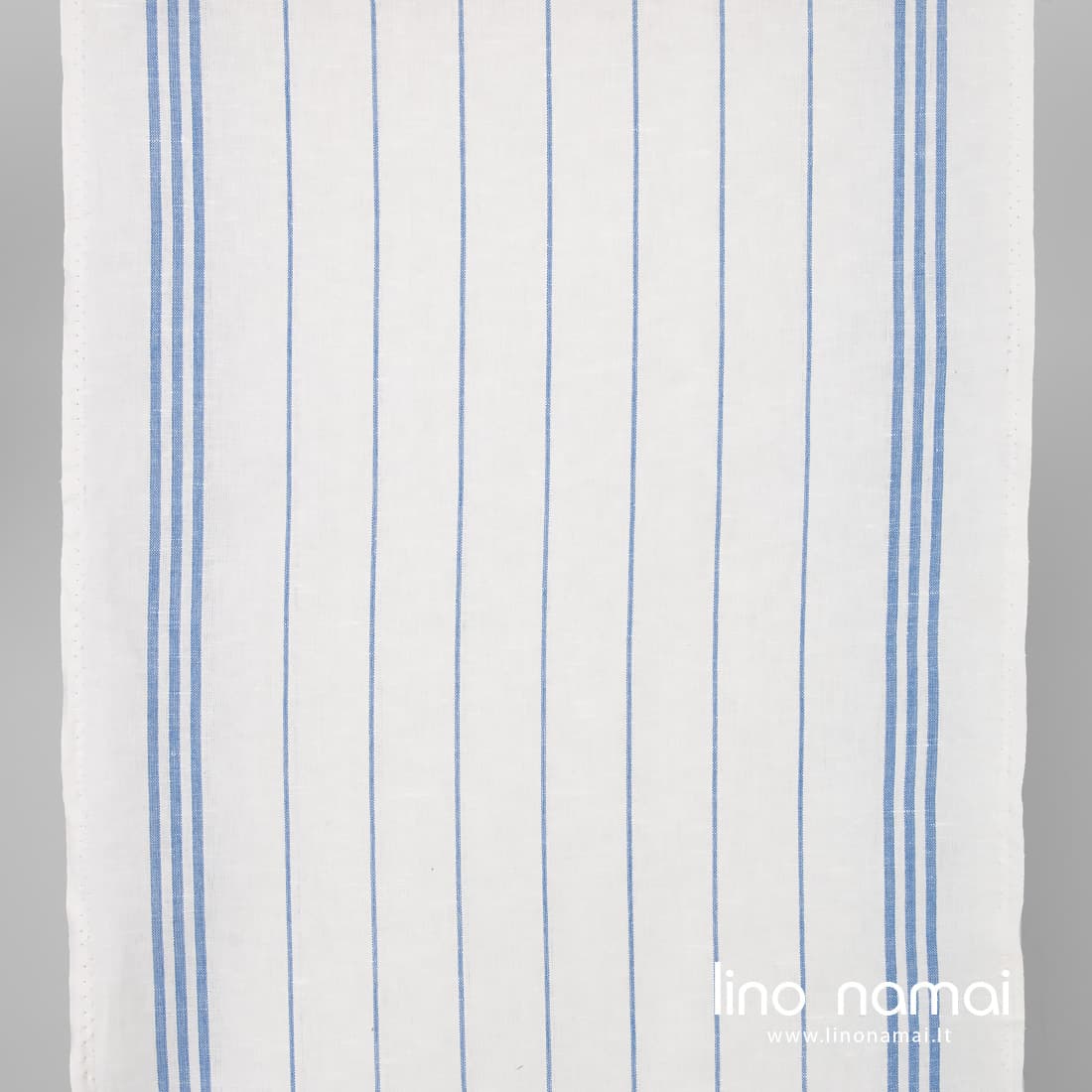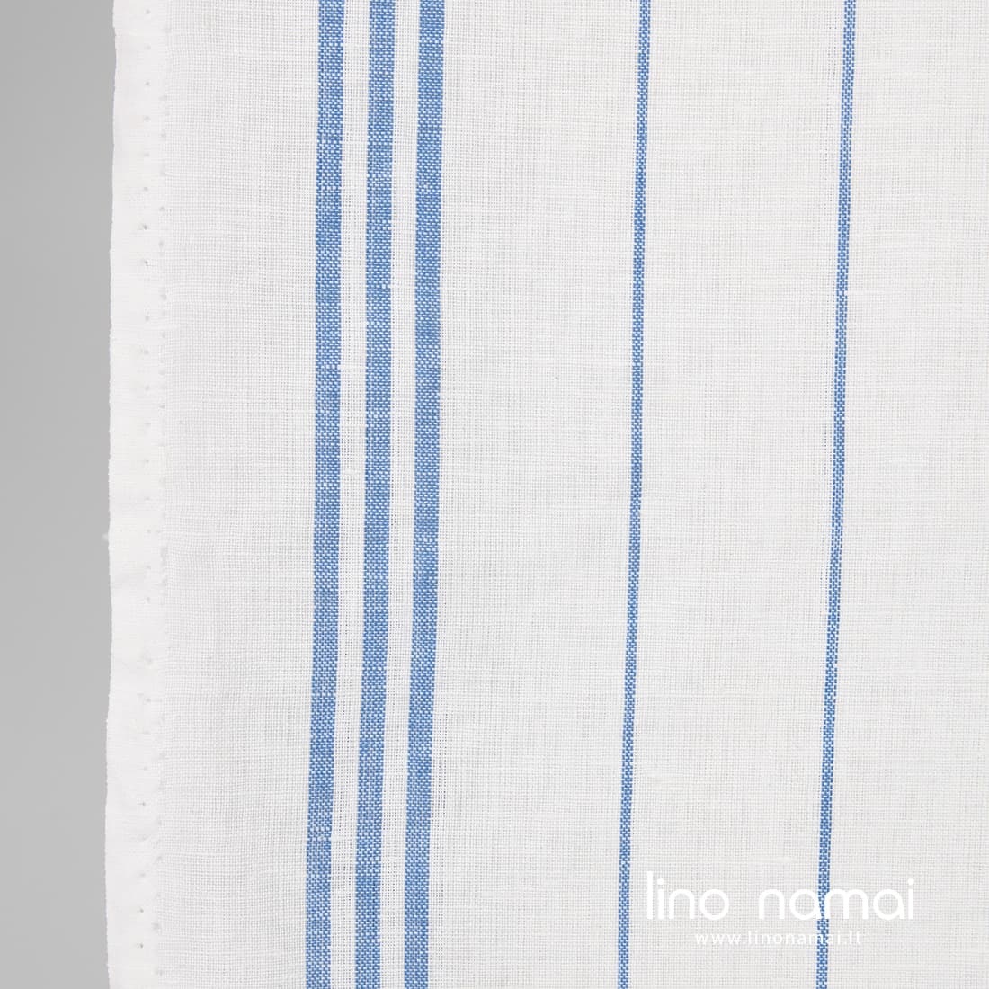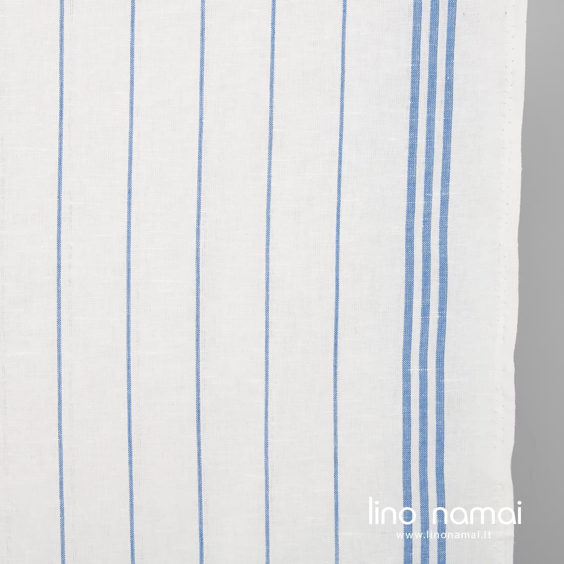 • Lino-medvilnės audinys pieno baltumo mėlynais dryžiais virtuvės rankšluostukams siūti