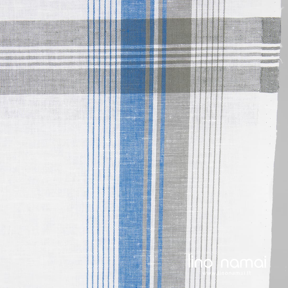 • Lino - medvilnės rankšluostinis audinys iš baltų, žalsvai pilkų ir mėlynų verpalų