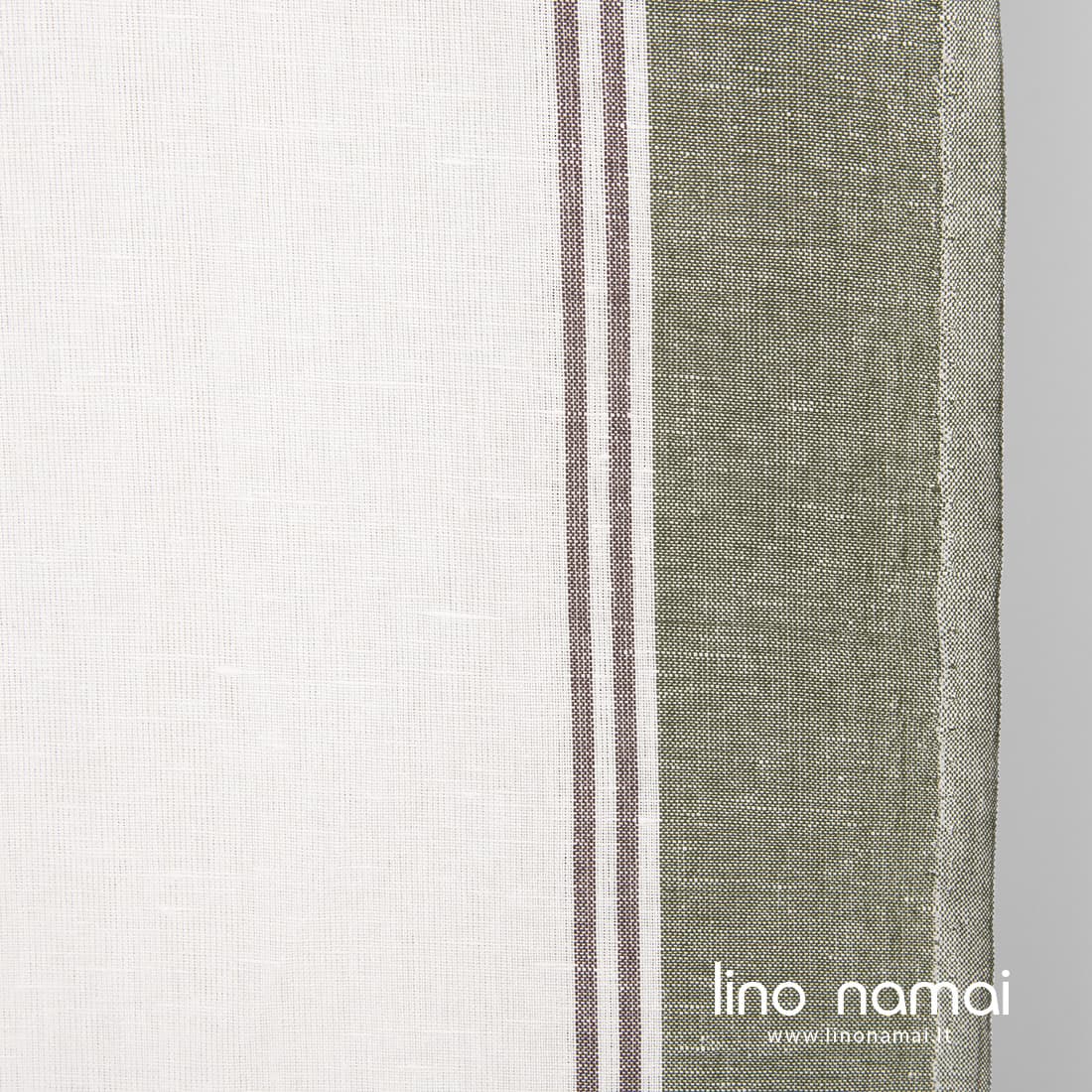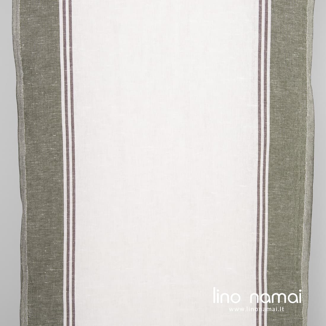 • Lino - medvilnės audinys žaliomis, rudomis juostomis tinka virtuvės rankšluosčiams siūti