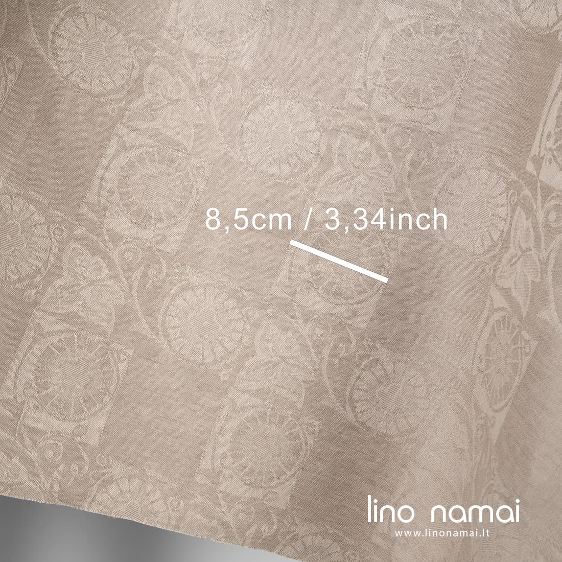 • Žakardinis lino - medvilnės audinys austas gėlėmis ir langeliais iš pilkšvai rusvų verpalų
