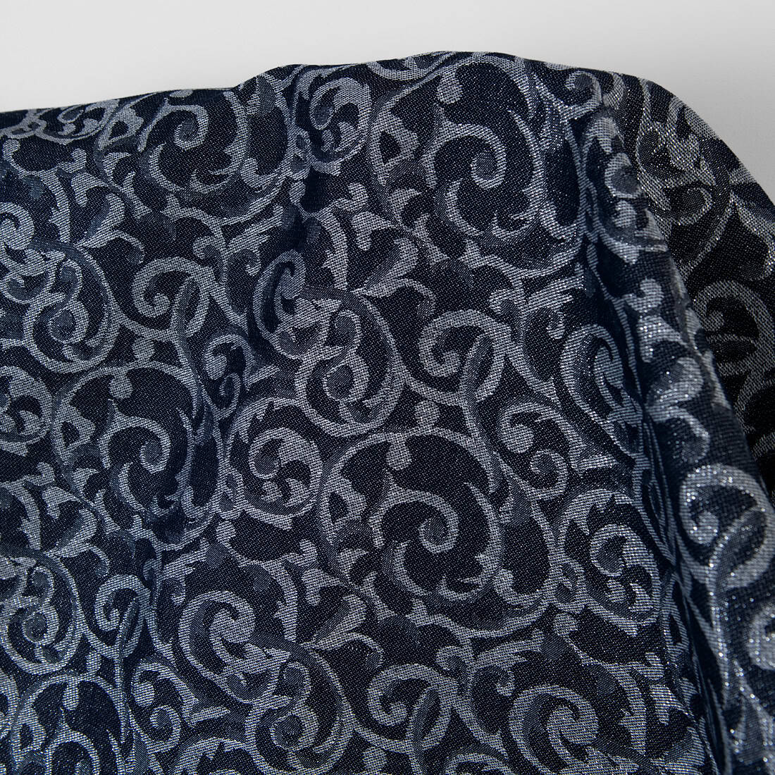 • Puslininis žakardinis tamsiai melynas blizgantis audinys, žakardinis