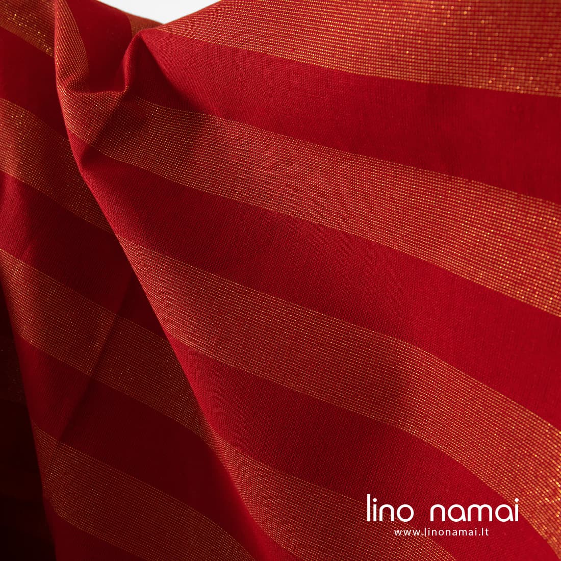 • Lino - medvilnės audinys su raudonomis ir auksu blizgančiomis juostomis