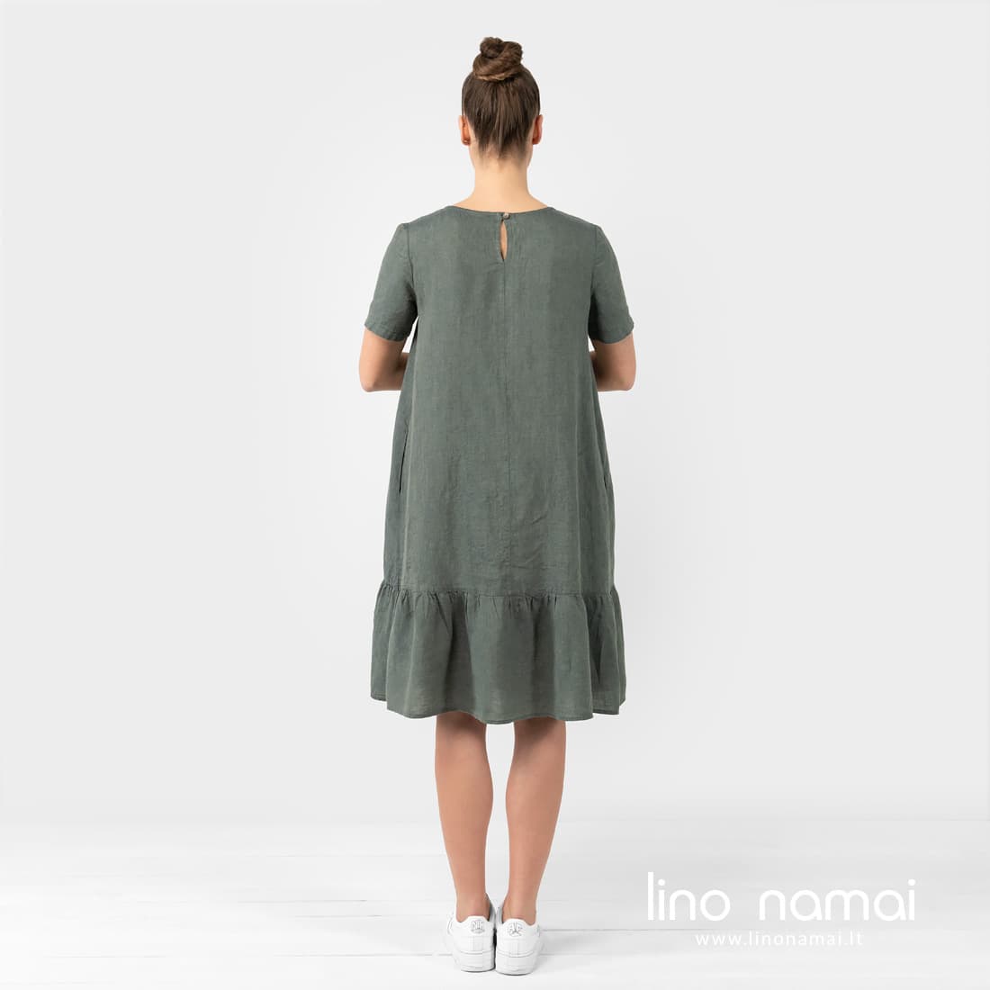 • Lininė tamsiai pilka suknelė trumpomis rankovėmis