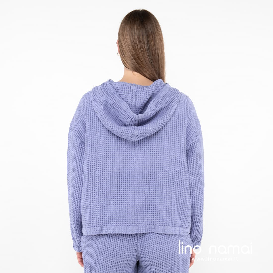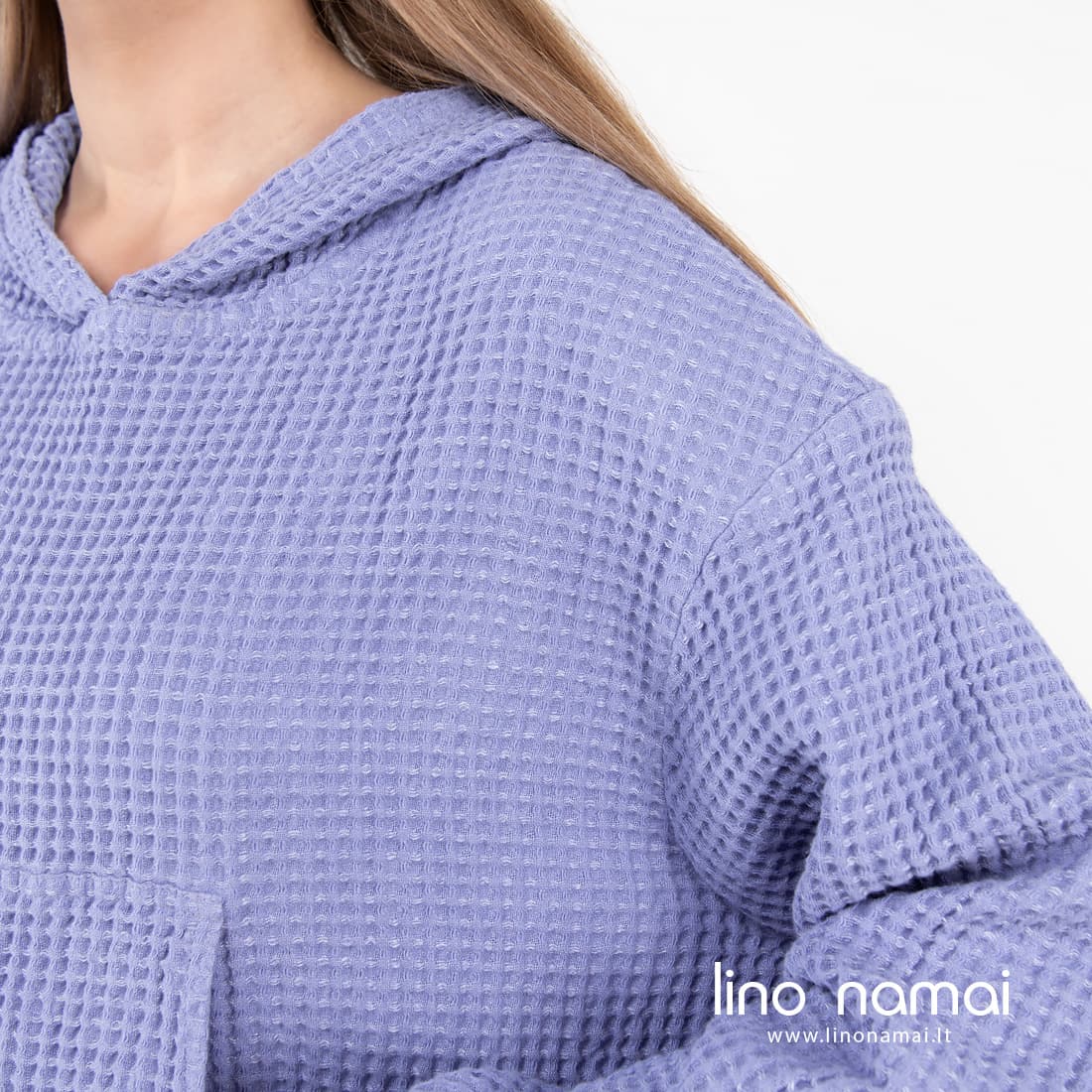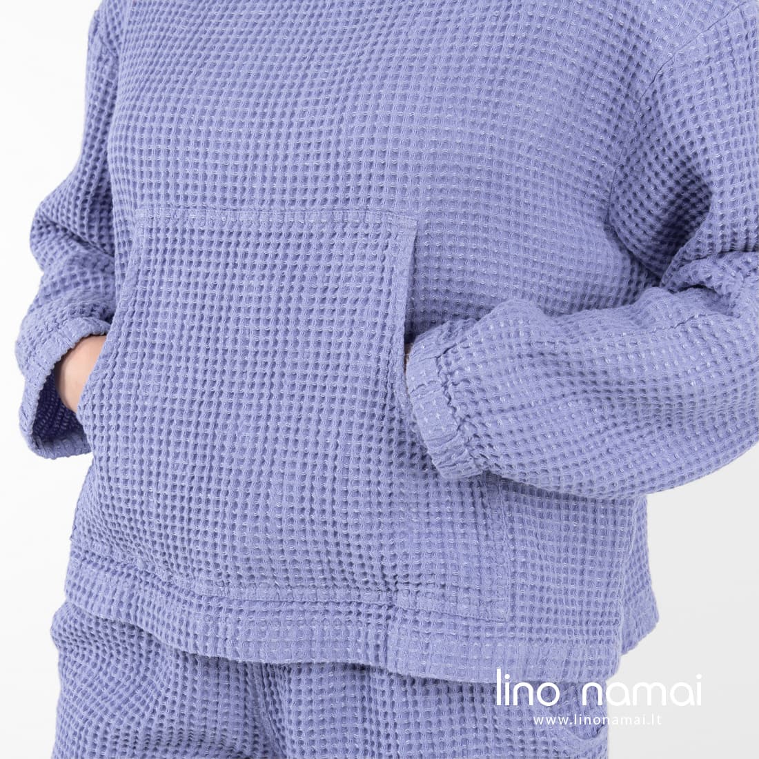 • Lino - medvilnės džemperis „vafliniais“ langeliais išaustais iš žibuoklių mėlynos ir žydros spalvos verpalų
