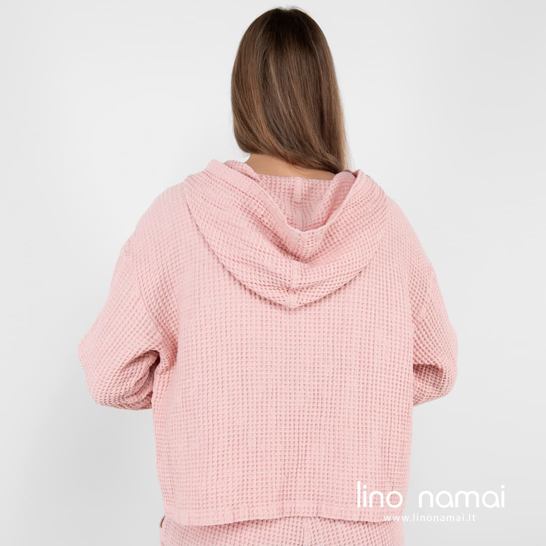 • Lino - medvilnės rožinis džemperis „vafliniais“ langeliais