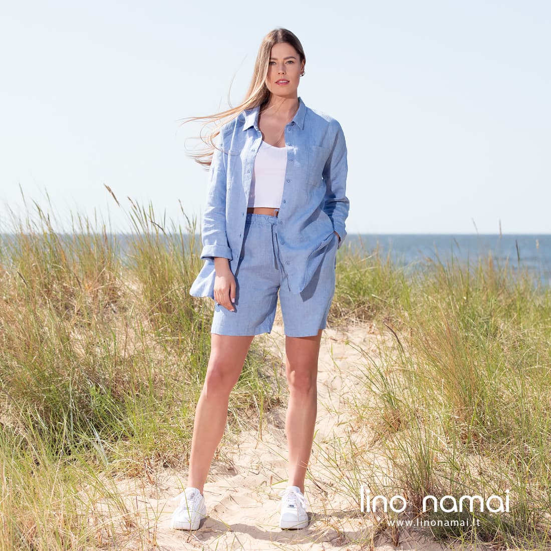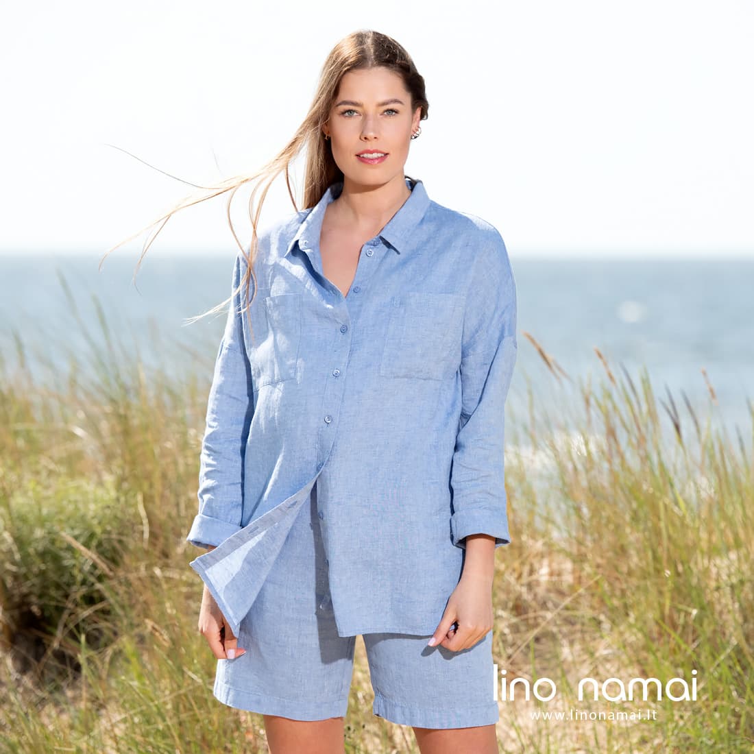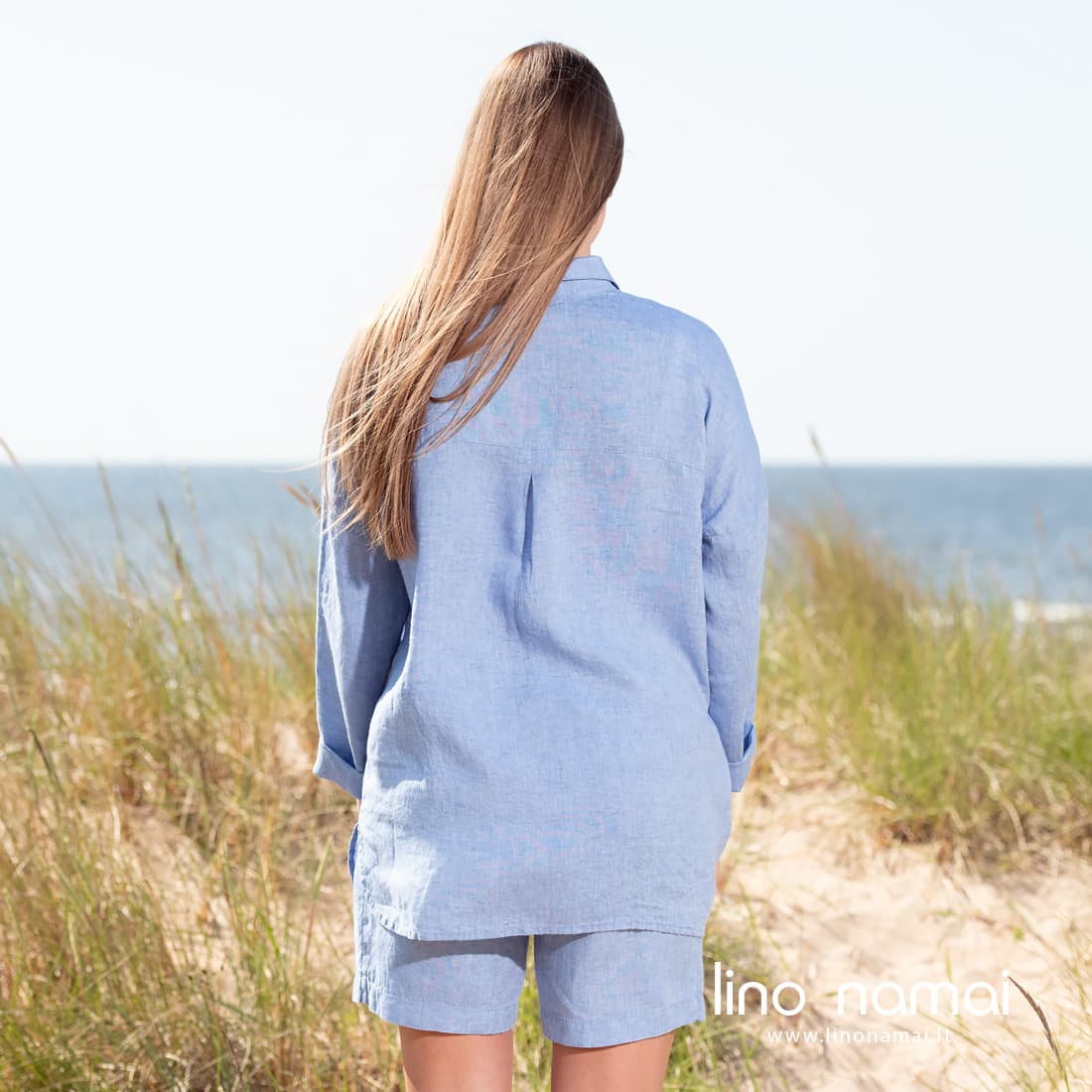 • DOLFI lininė mėlyna palaidinė ir derantys šortai