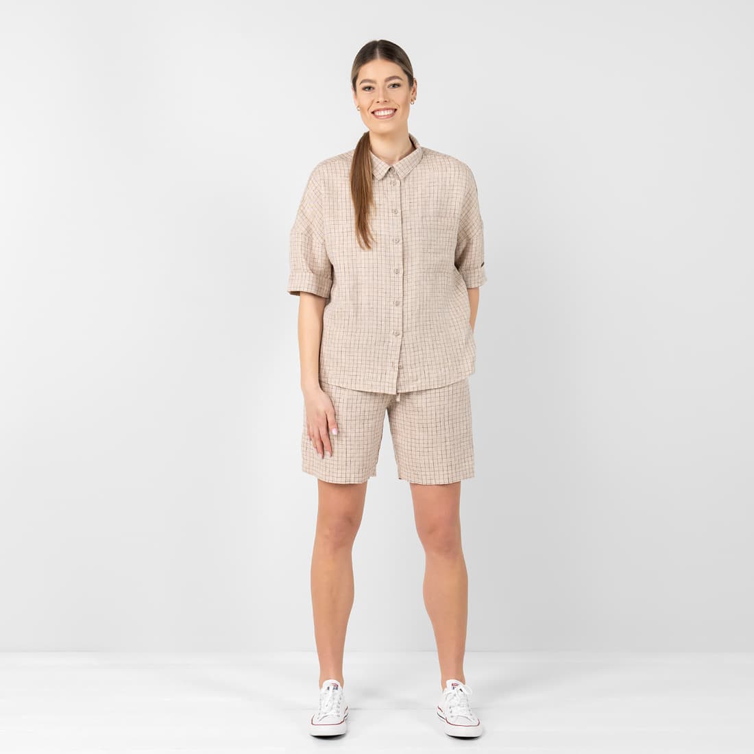 • Lininės rusvos palaidinės EILA ir DOLFI šortų derinys