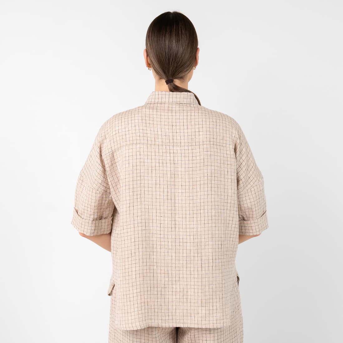 • Lininė rusva languota palaidinė oversize marškinių tipo, nugaros pusė