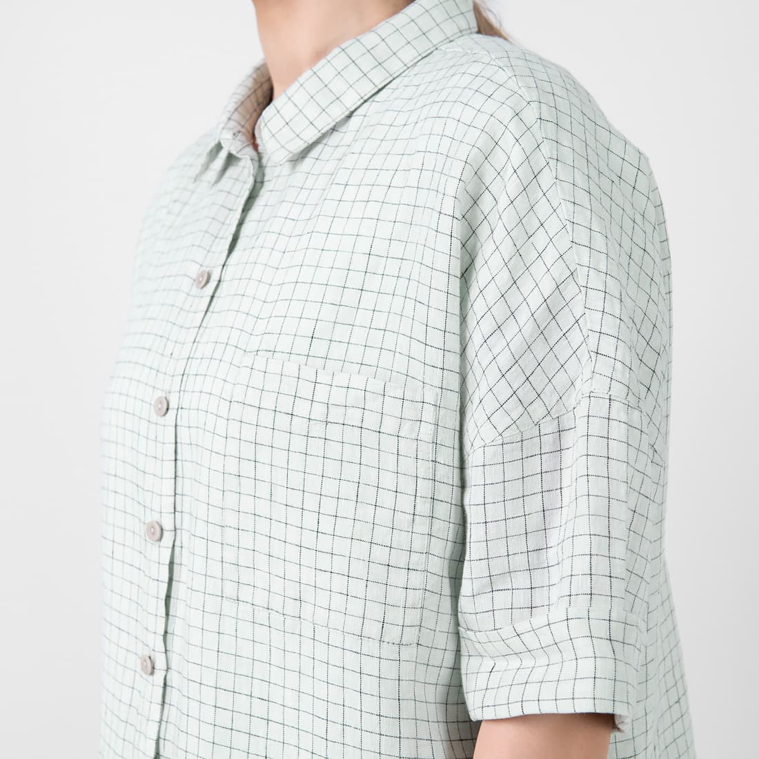• Lininė žalsva languota palaidinė 3/4 rankovėmis