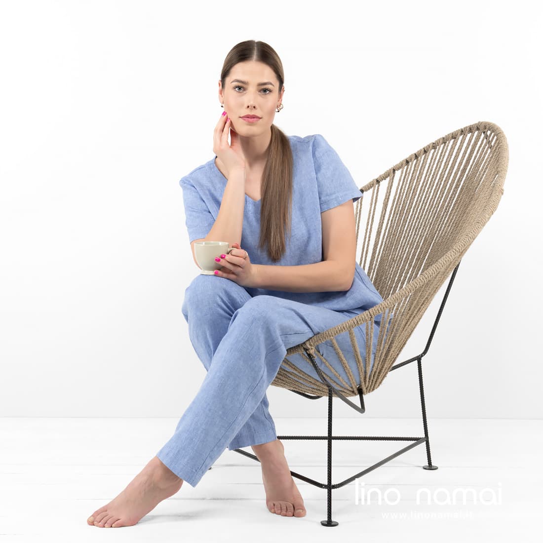 • LILLY lininė melsva palaidinė ir derančios kelnės