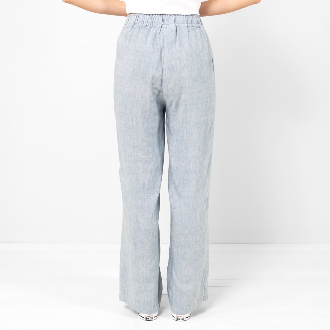 • KENDA lino-viskozės melsvos kelnės, nugaros pusė