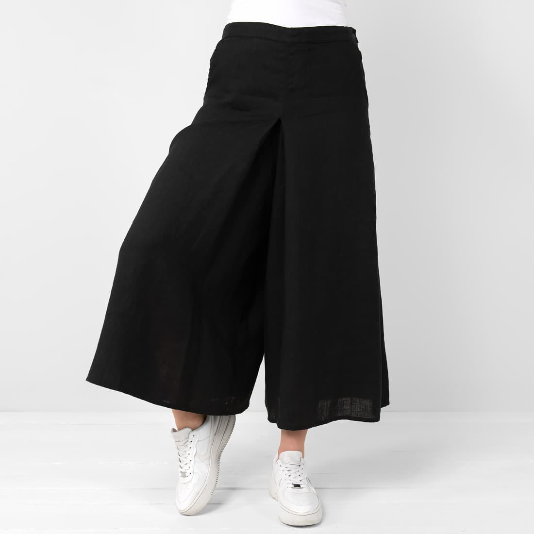 • Lininės juodos sijonkelnės su guma nugaroje juosmenyje