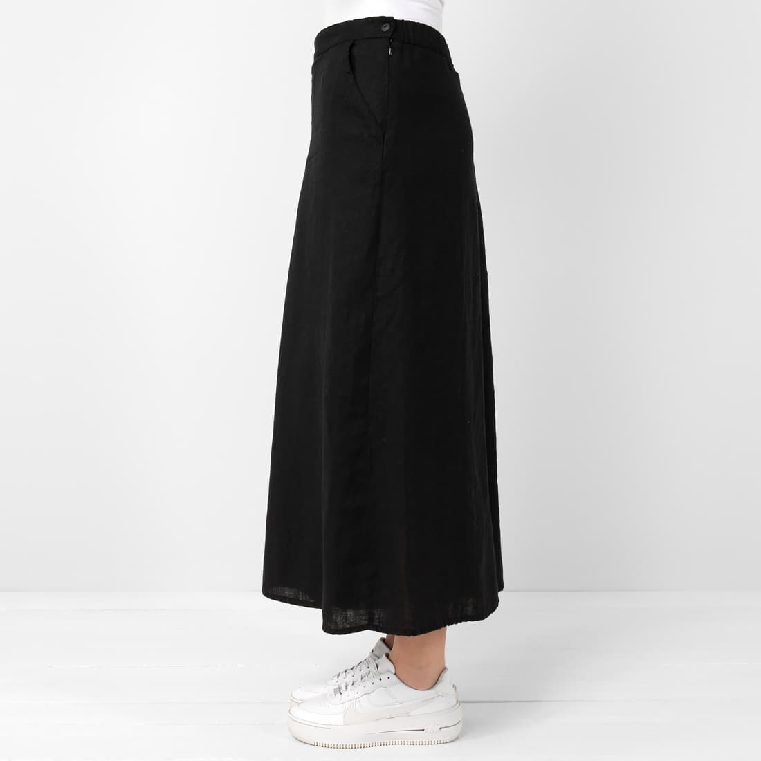 • Lininės juodos sijonkelnės su kišenėmis