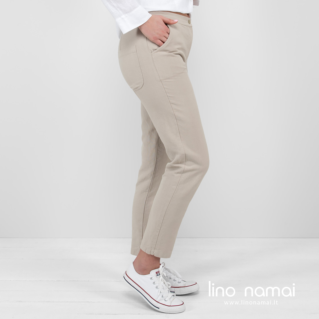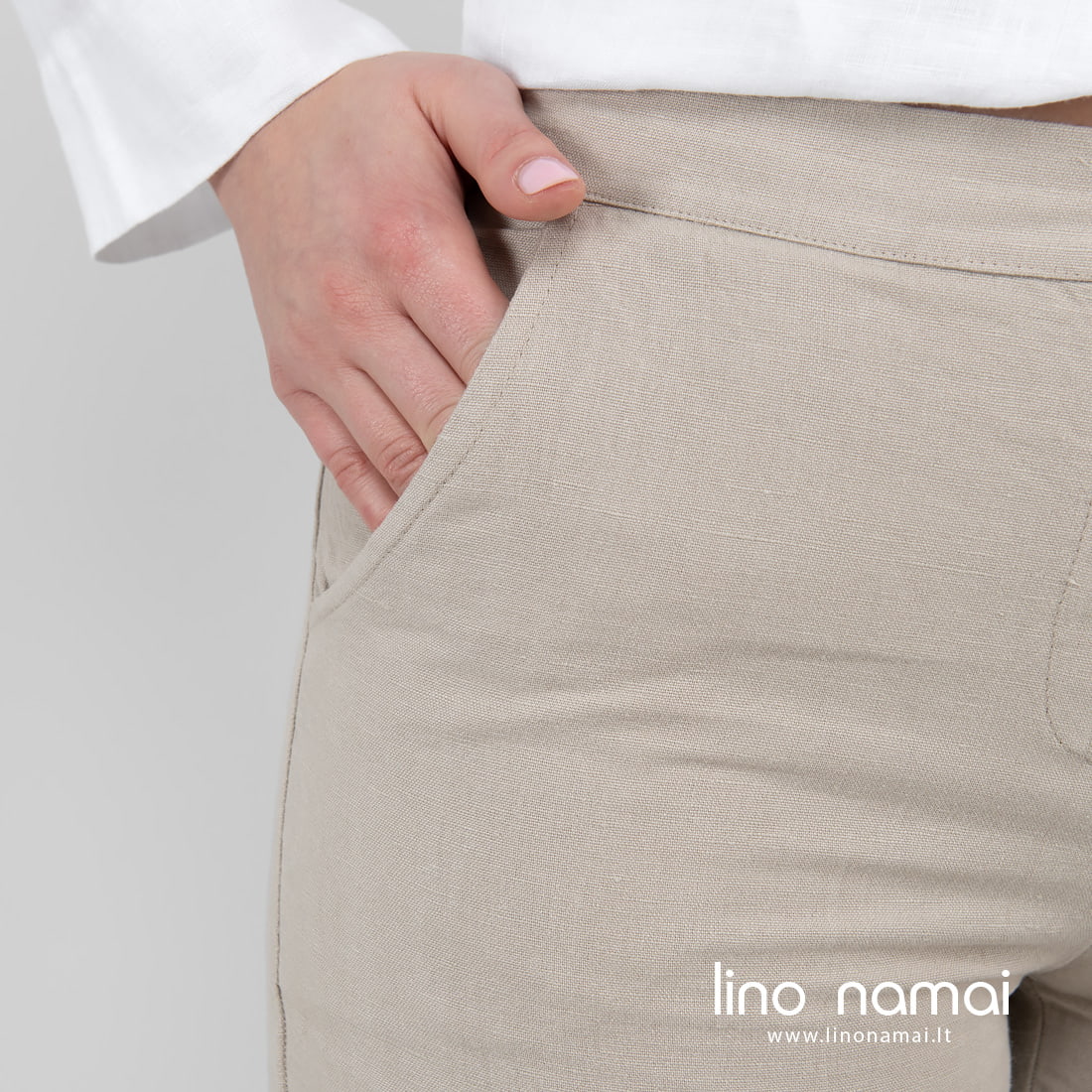 • Puslininės pilkos kelnės.
