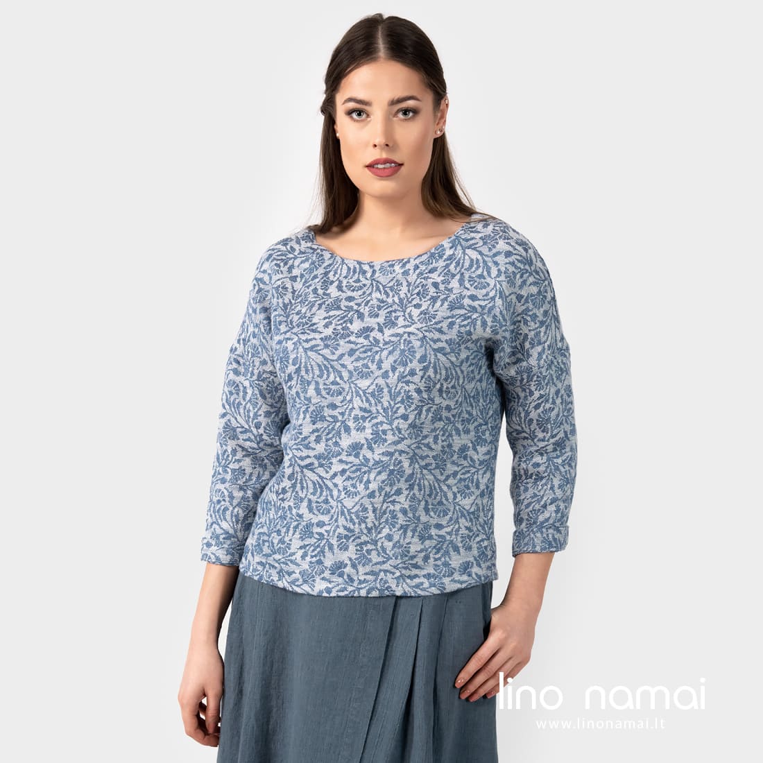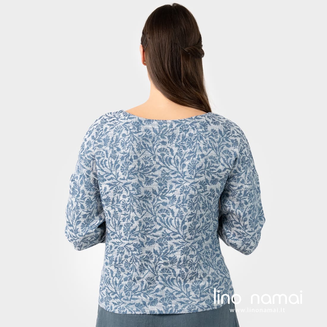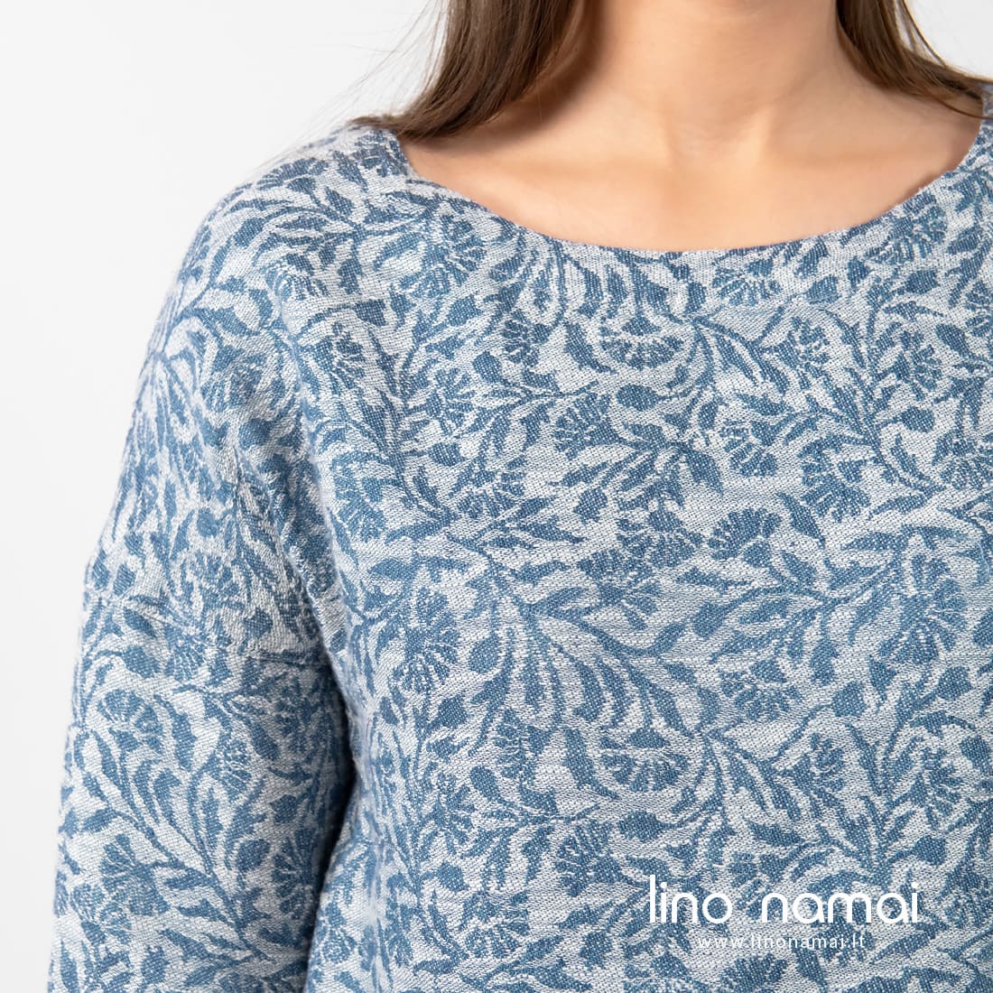 • Lininė palaidinė iš žakardinio audinio mėlynomis gėlėmis