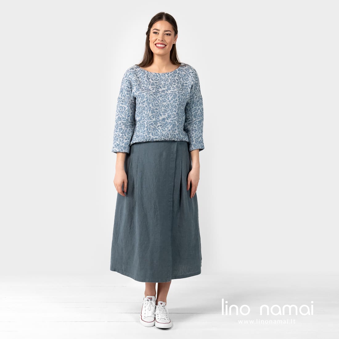 • Lininė gėlėta palaidinė ir pilkas sijonas LUNGO