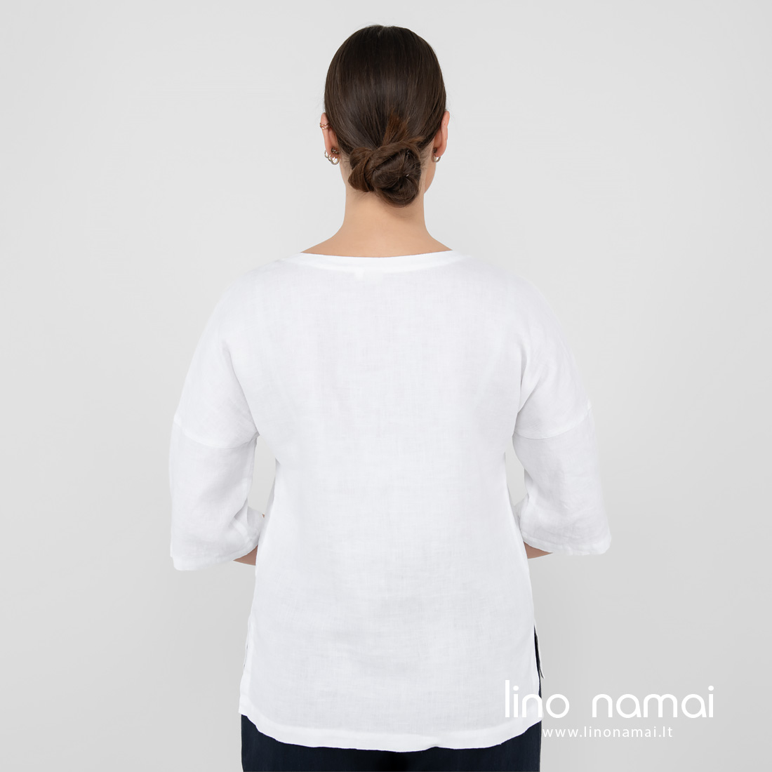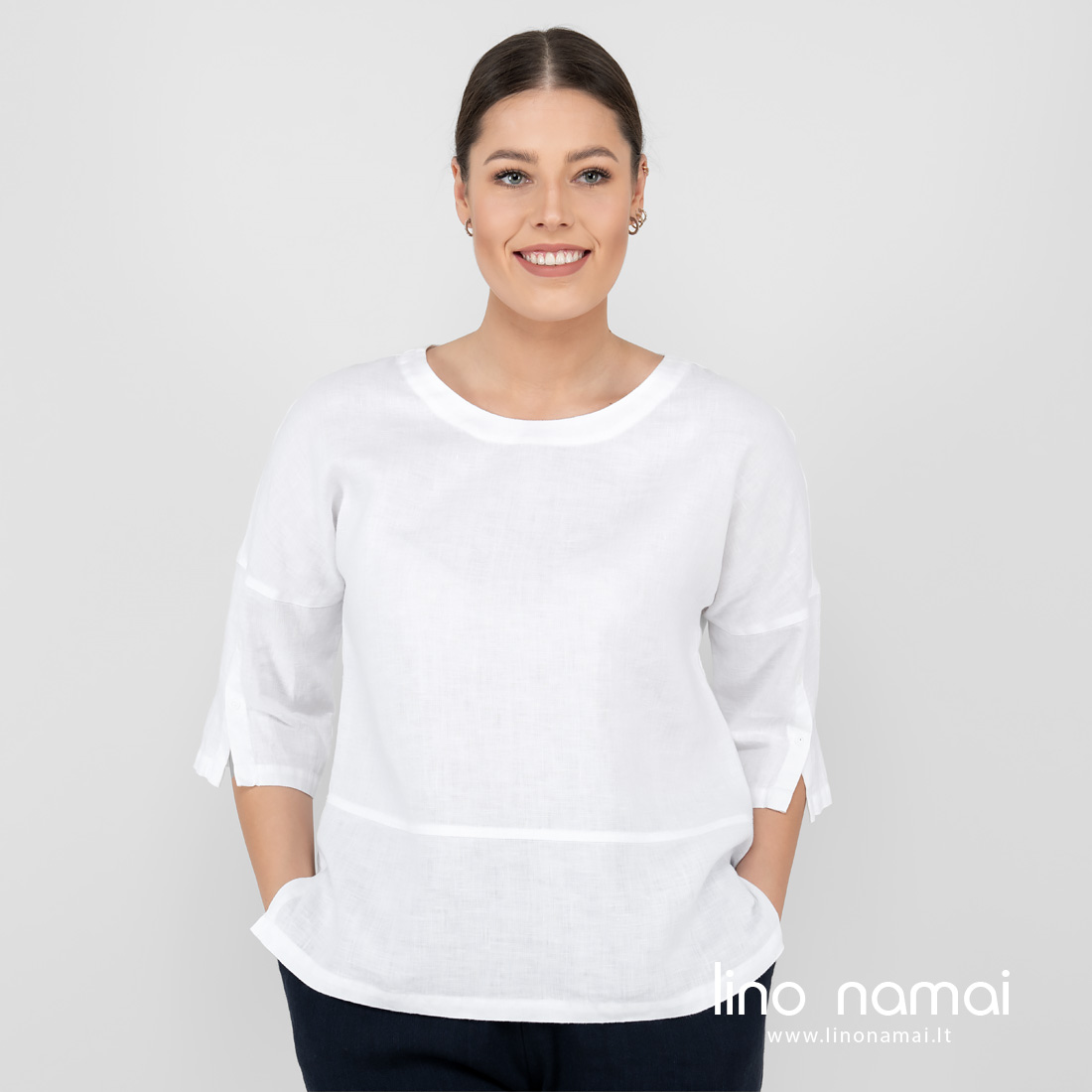 • lininė balta palaidinė, su 3/4 rankovės su spaudėmis.
