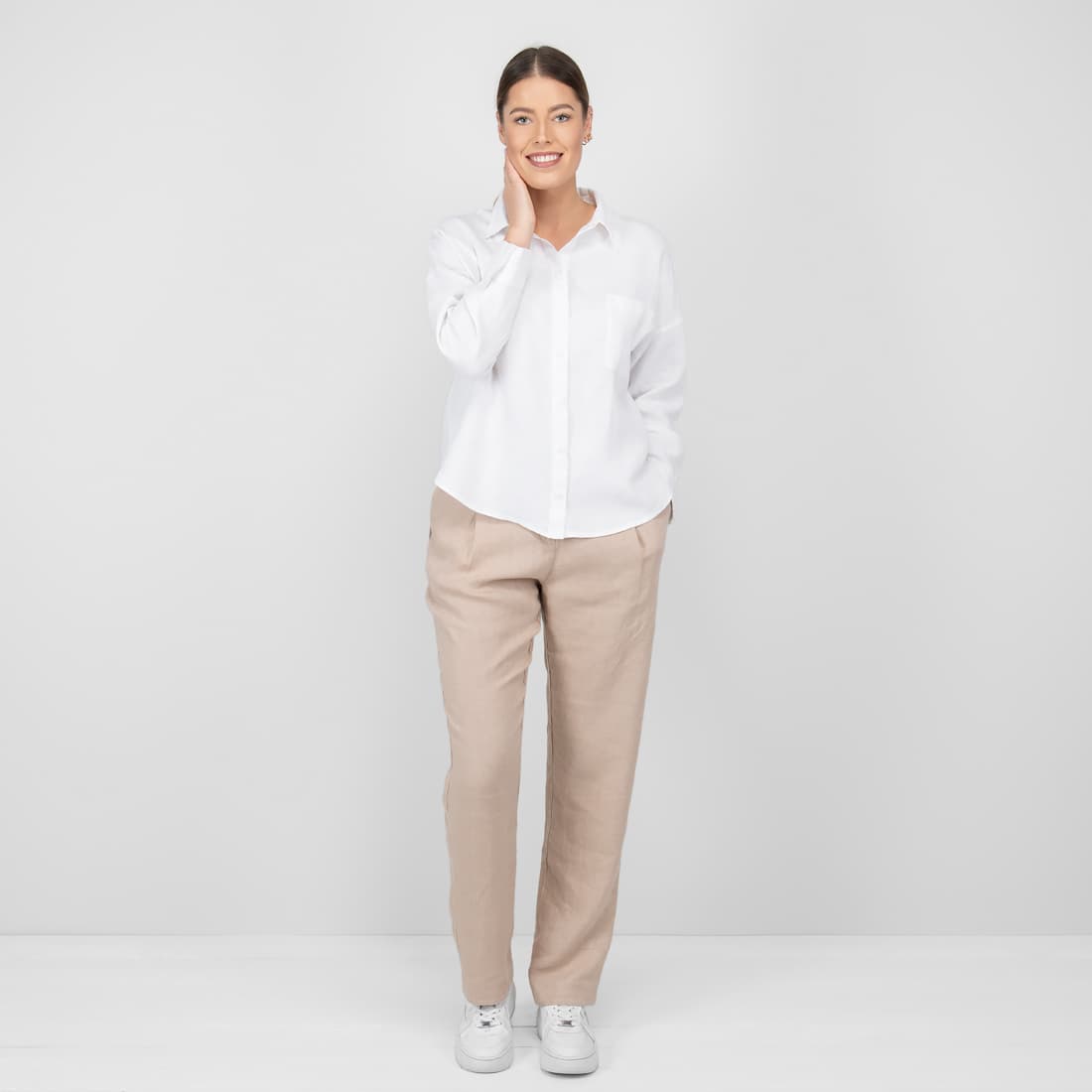 • Lininė balta palaidinė ilgomis rankovėmis