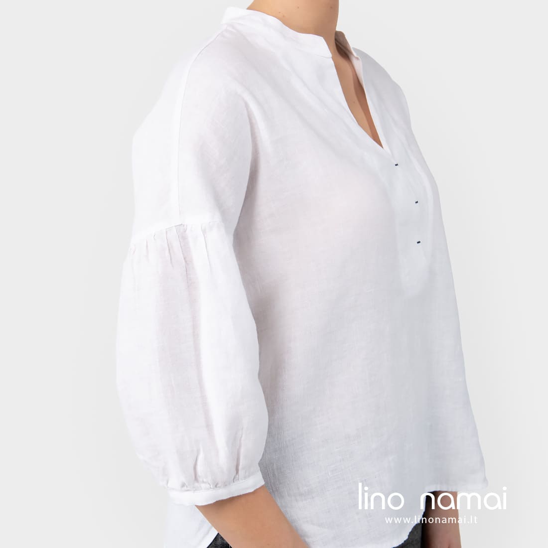 • Lininė palaidinė ryškiai balta, su 3/4 rankovėmis